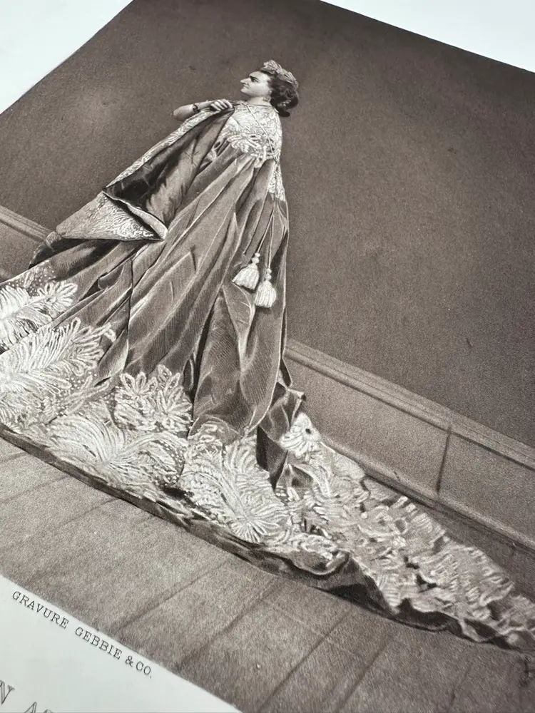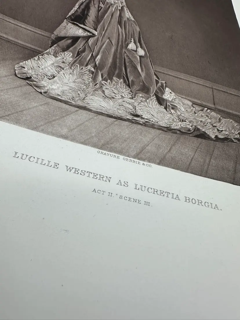 A scene of a beautiful woman from the 1880s portraying “Lucretia Borgia” Act II Scene III production.