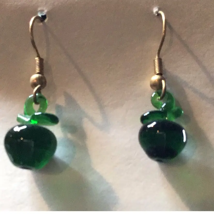 Handblown glass, apple shaped earrings on Gold Tone wires. New