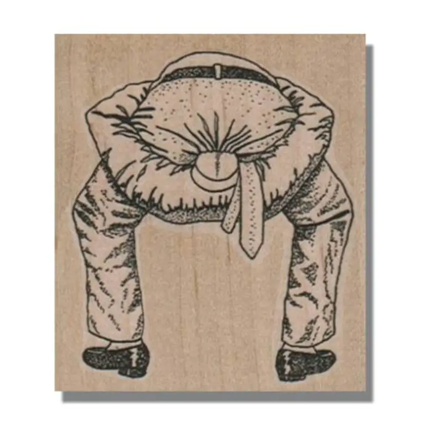 Man With Head Up Butt Rubber Stamp Wood Mounted Size: 2-1/2 x 2-3/4 inches Red rubber Brand new/unused • Great for crafts, junk journals, mixed media projects, collage, card making and tags. • First purchase on District? Use this code for $5 off a $10 min purchase. ALOHAG34