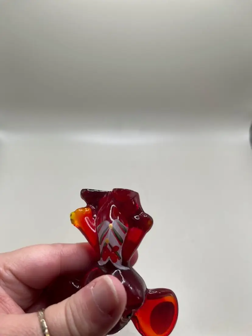 This Fenton ruby red glass Christmas mouse is a beautifully handpainted collectible! Perfect for Fenton collectors! Measures 2.5 inches tall