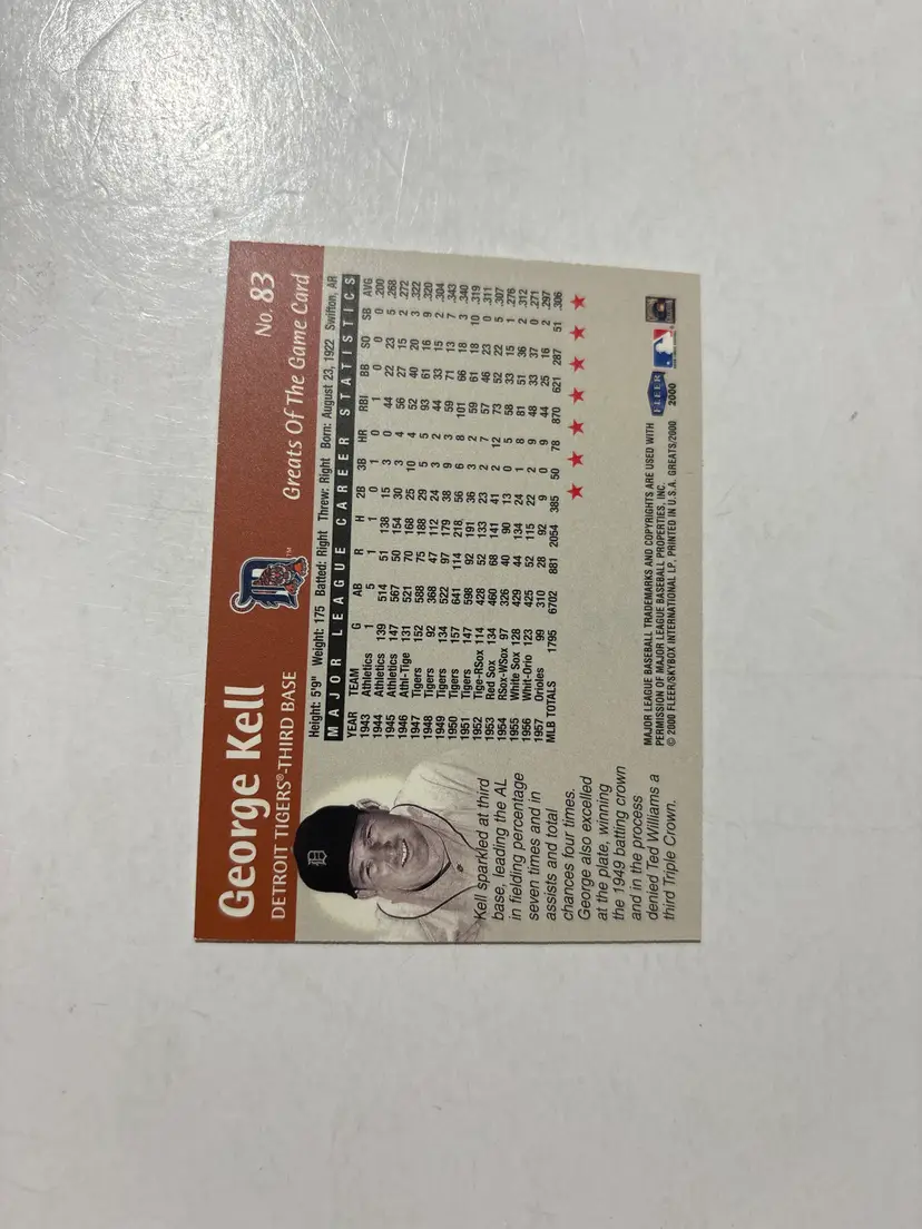 This 2000 fleer grades of the game card is signed in blue sharpie by Hall of Famer George Kell