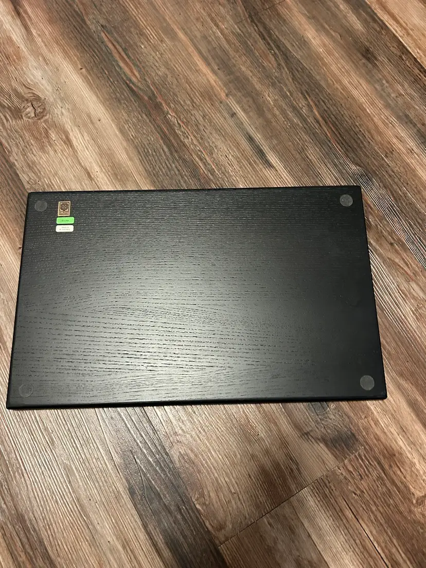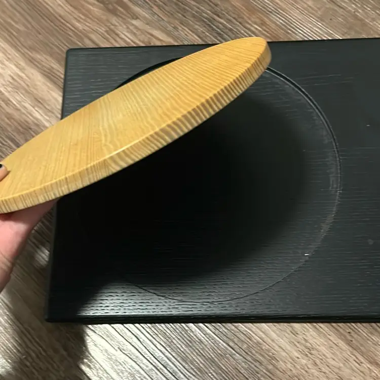 This magnificent serving board, hand made by the best craftsman known for their craft. It has a flat black finish with beautiful wood with a natural wood toned circle. Circle is removable