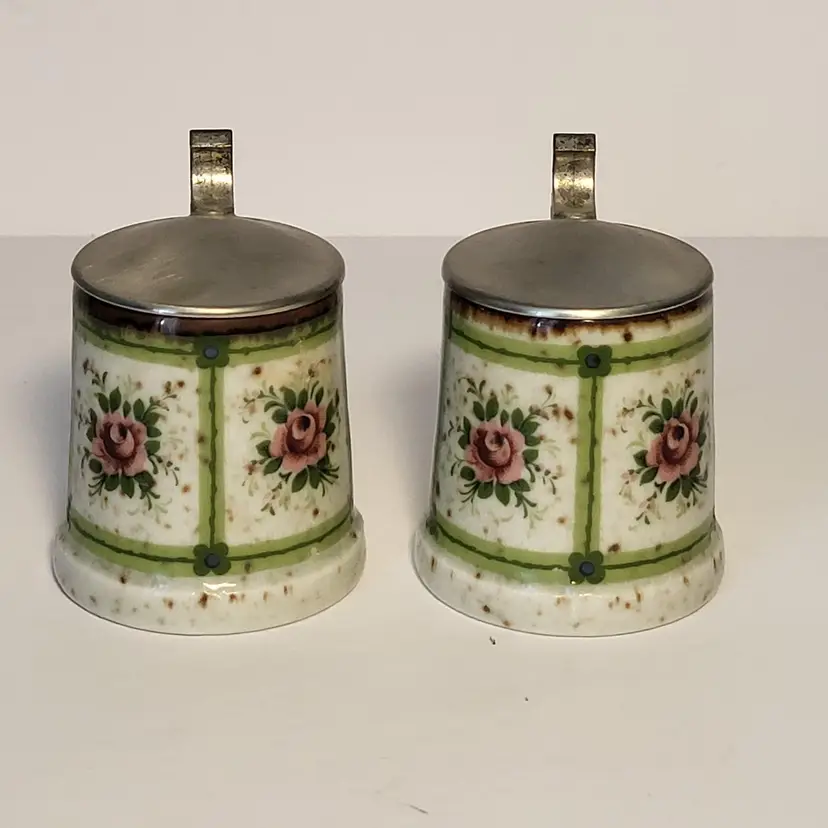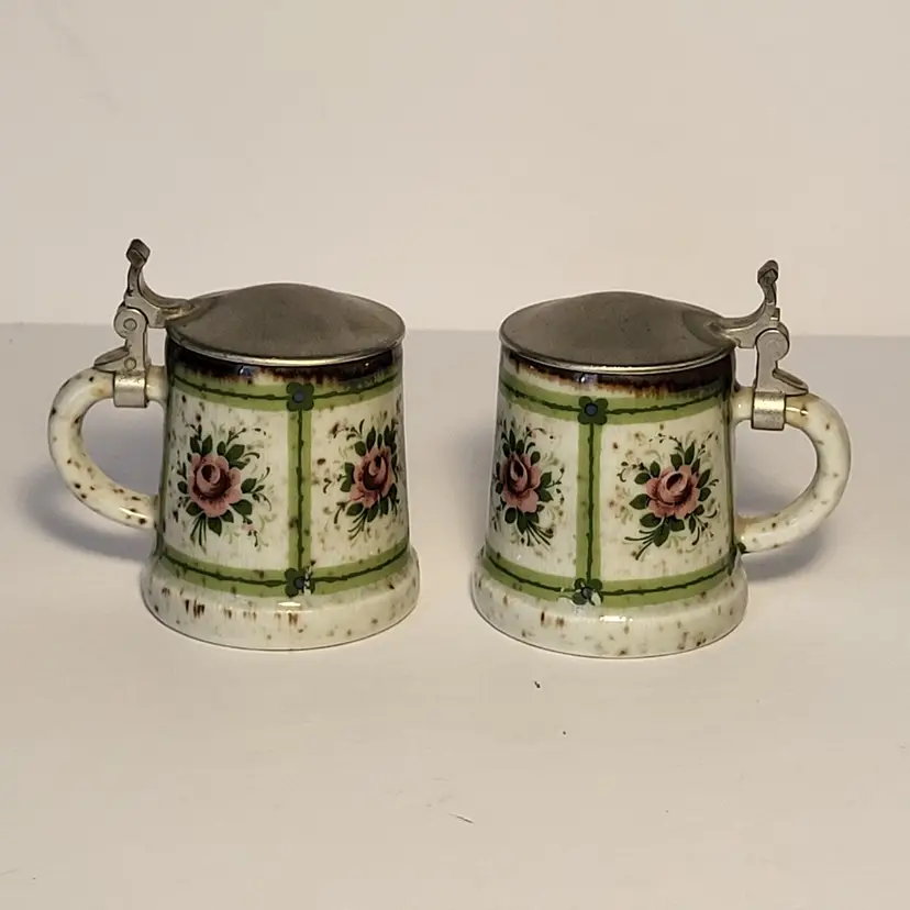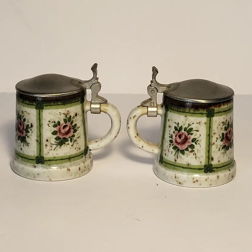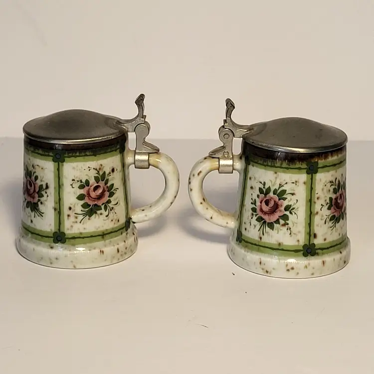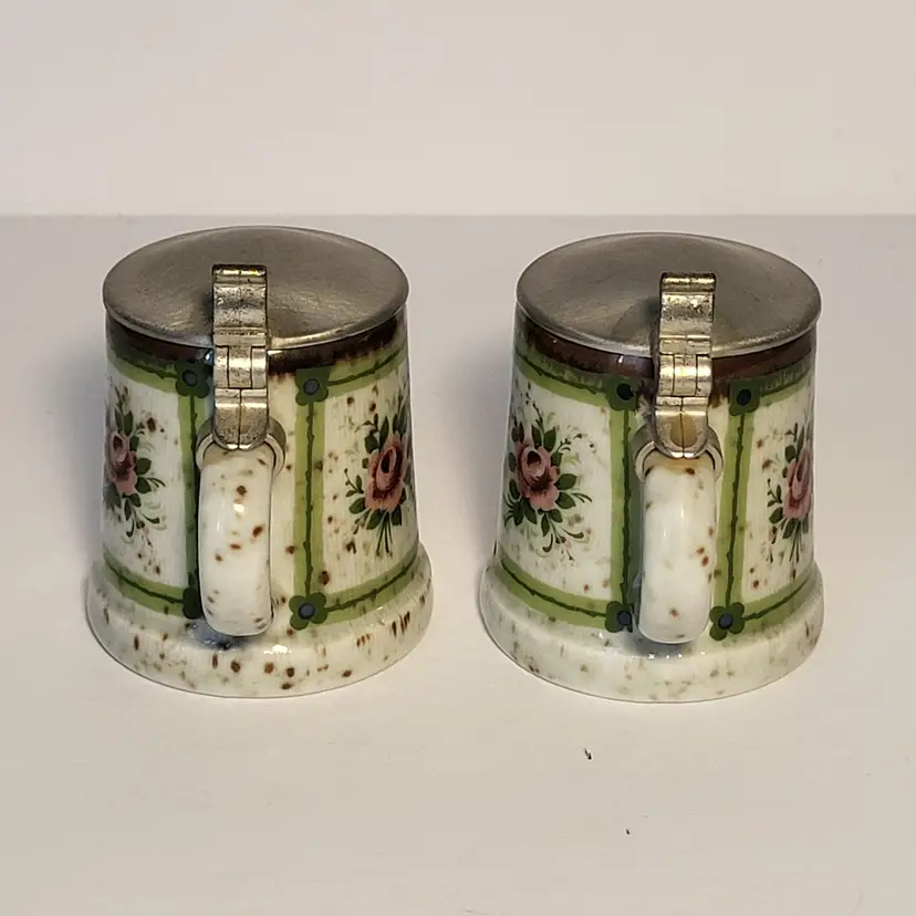 Rein-Zinn BMF Miniature Beer Steins 2.5in Flower Germany Pewter Lid Vintage Rare