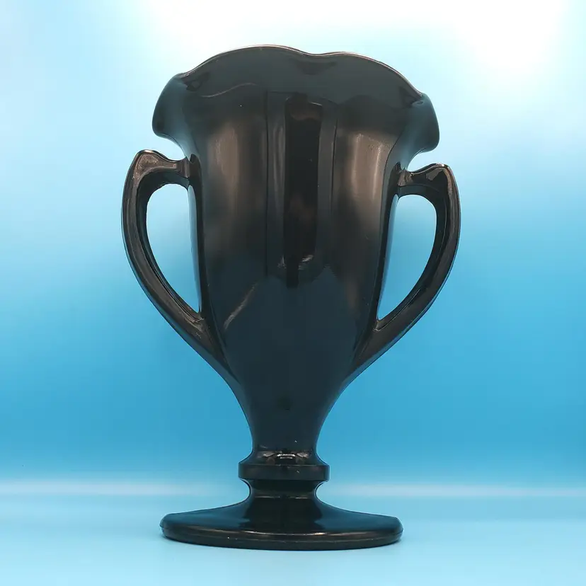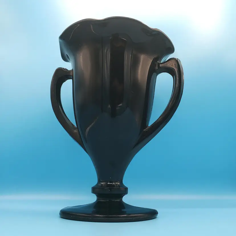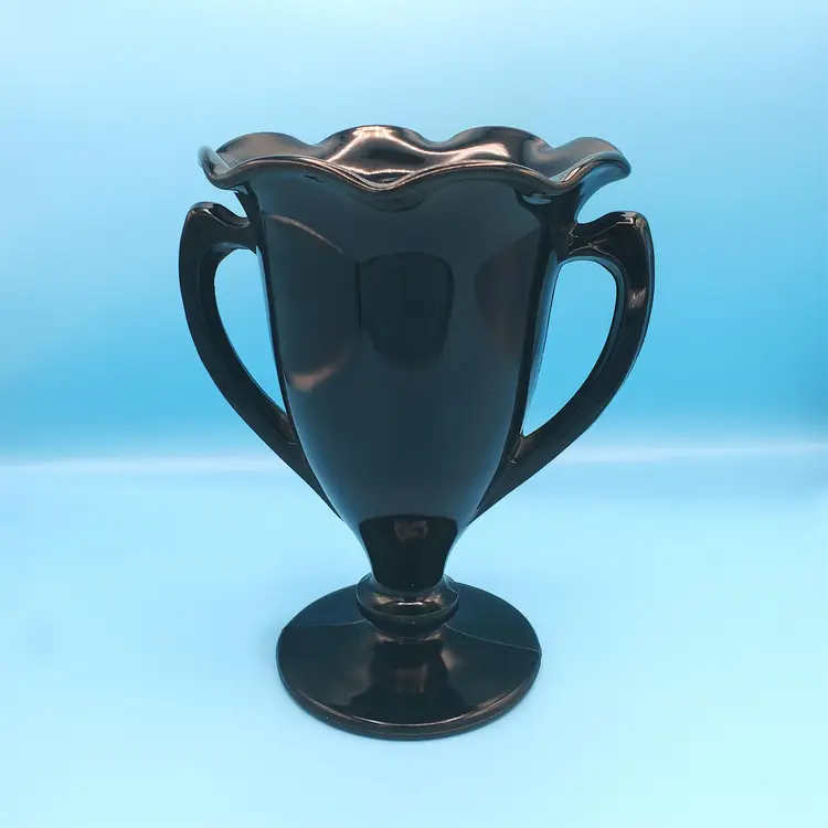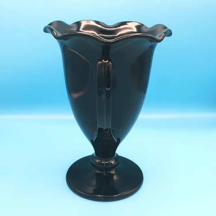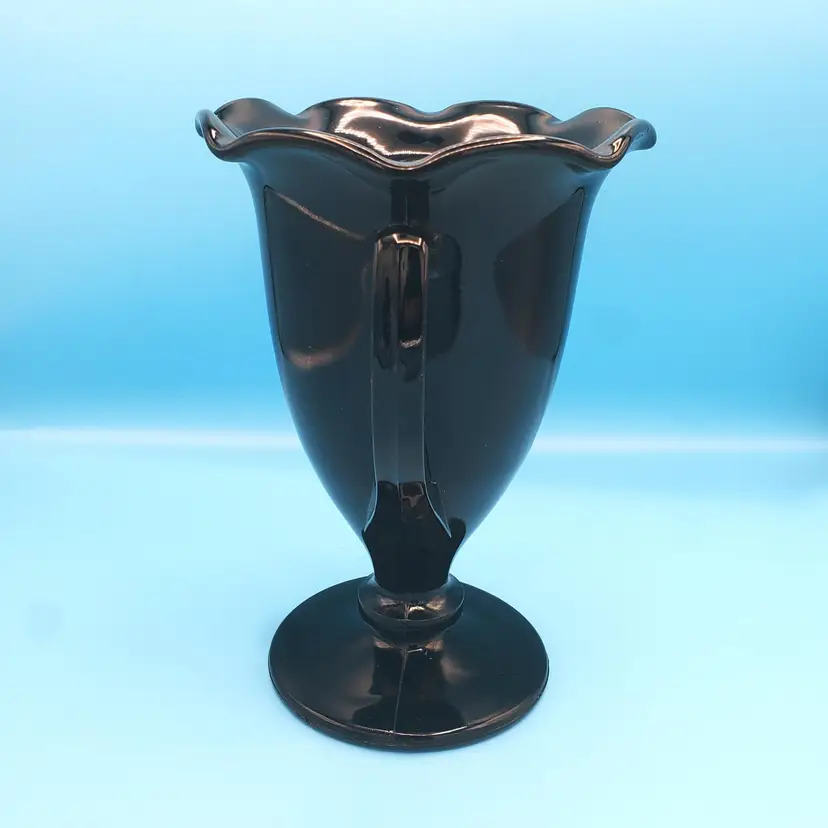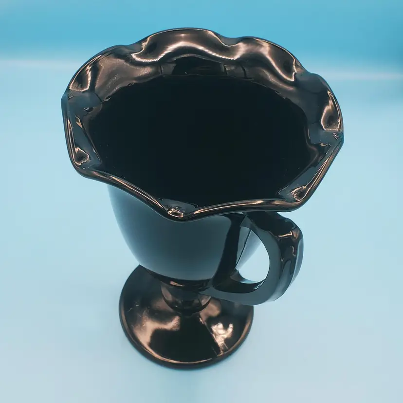No chips or cracks. Round base. Double handles with pie crust rim. Thanks for looking!
