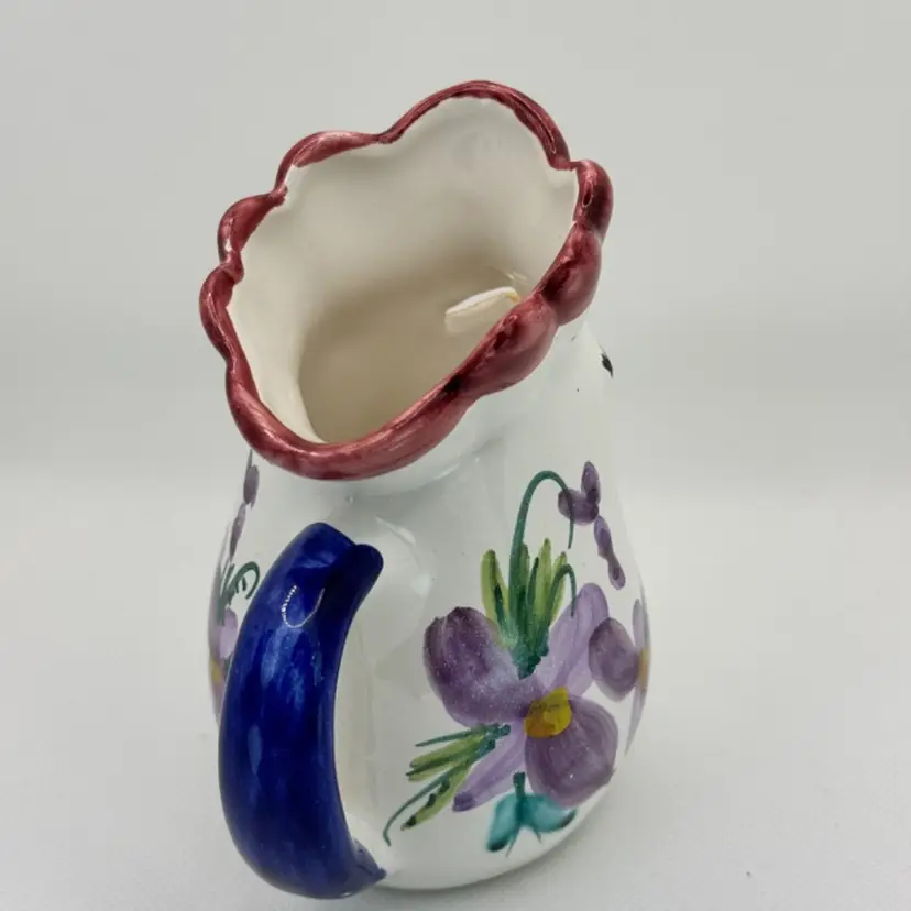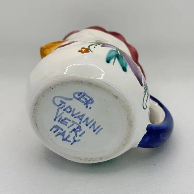 Vintage Italian Giovanni Vietri rooster chicken creamer pitcher handcrafted, made in Italy, signed by artist. Very beautiful, no cracks or chips. Measures 4.5x4.5x3. Weighs 8oz.