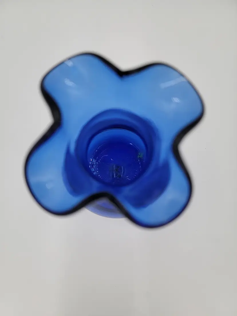 #02 Cobalt Blue Handblown Glass Vase with Ruffled Edge