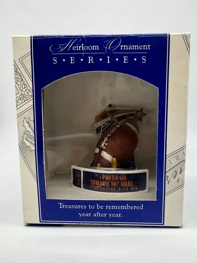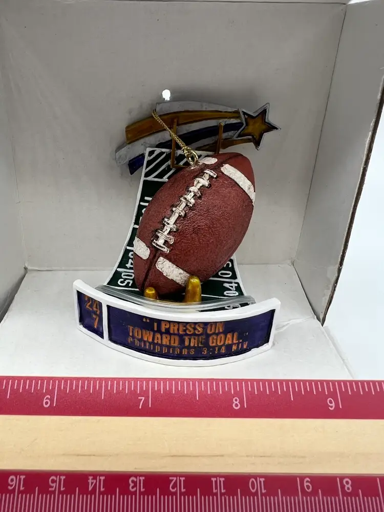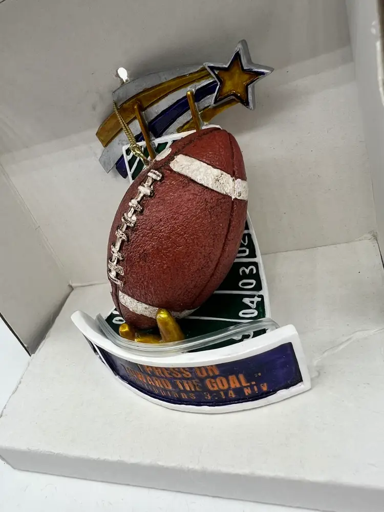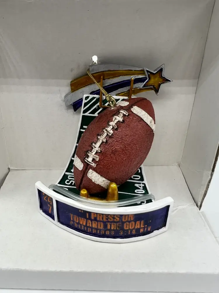 Excellent condition. In original box. Discontinued ornament. Phrase “I press on towards the goal” Philippians 3:14