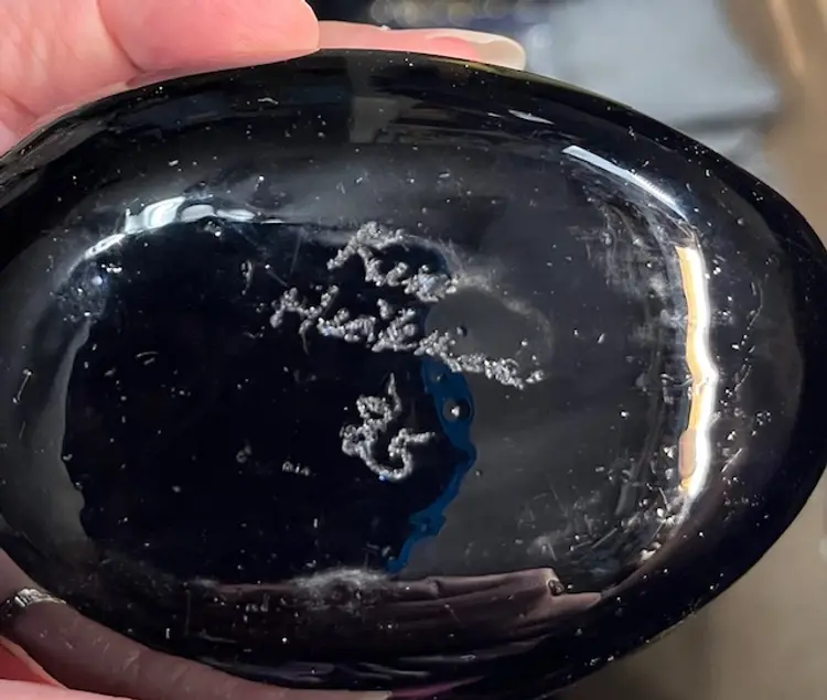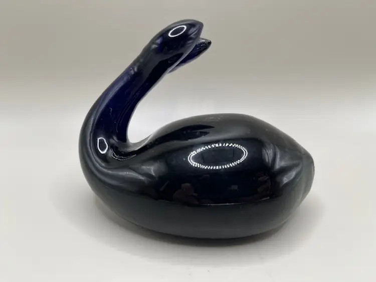 This paperweight is a lovely shade of cobalt blue. It measures 4.25 inches long, 3.25 inches tall, and is signed and dated (see pictures). It will be a perfect addition to your glass or paperweight collection.