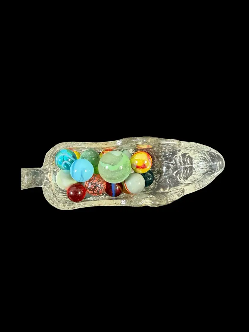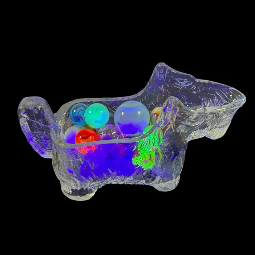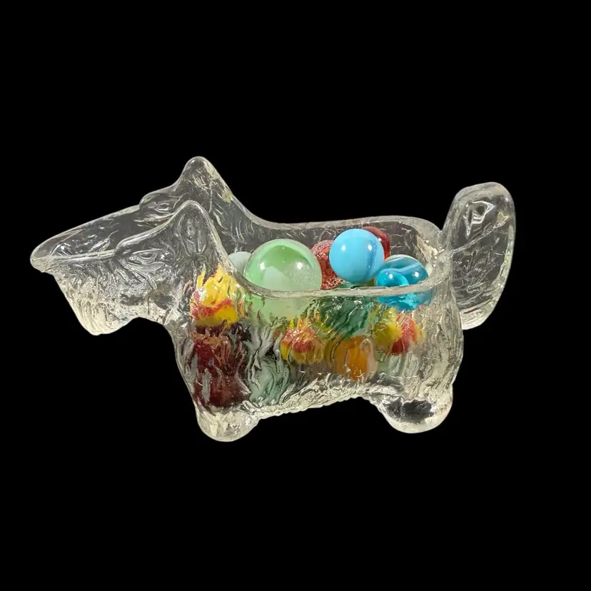 Vintage 6” Scottie Glass Creamer Full Of Vintage Marbles with GLOWERS!