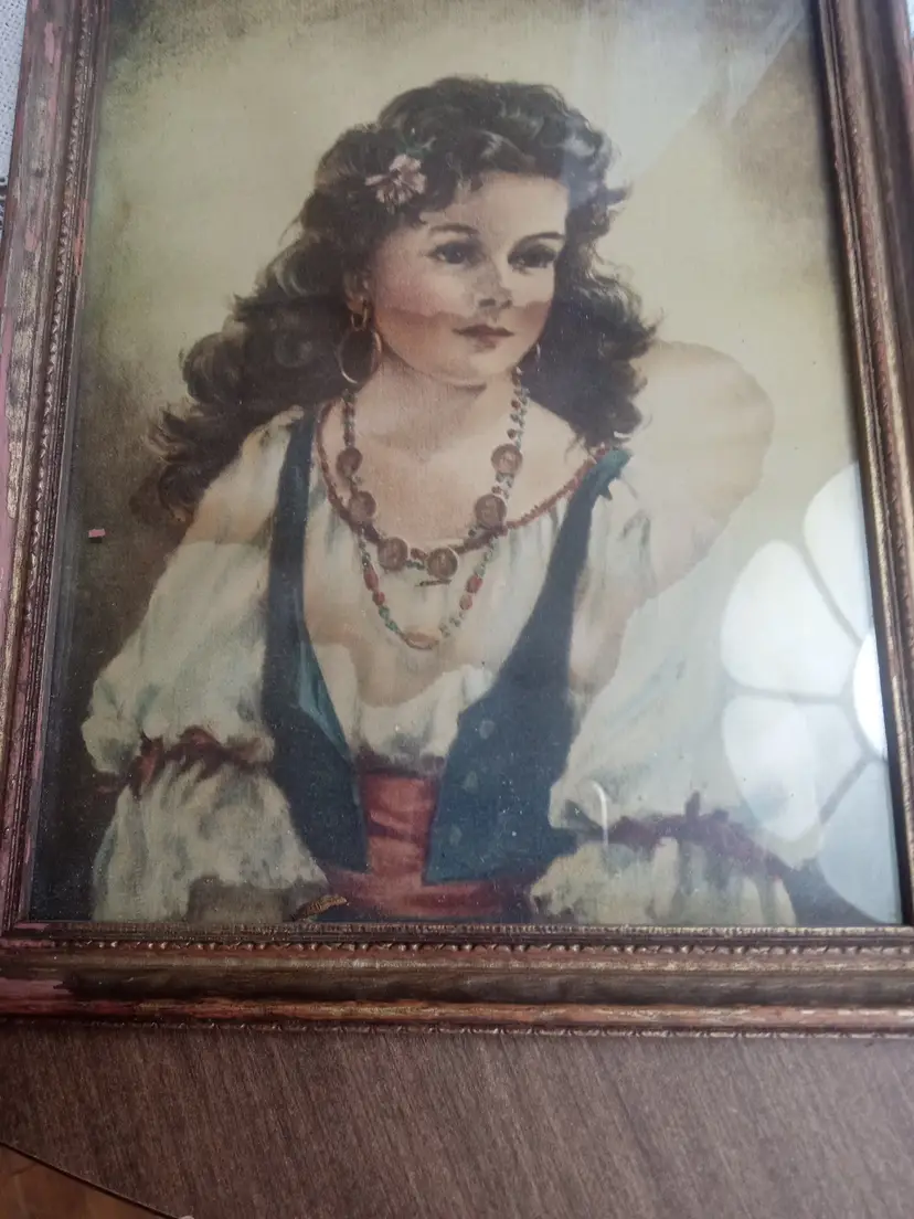 Vintage Pictures Elena & Chico.gold tone frame 8x10 beautiful clothing