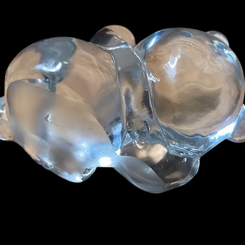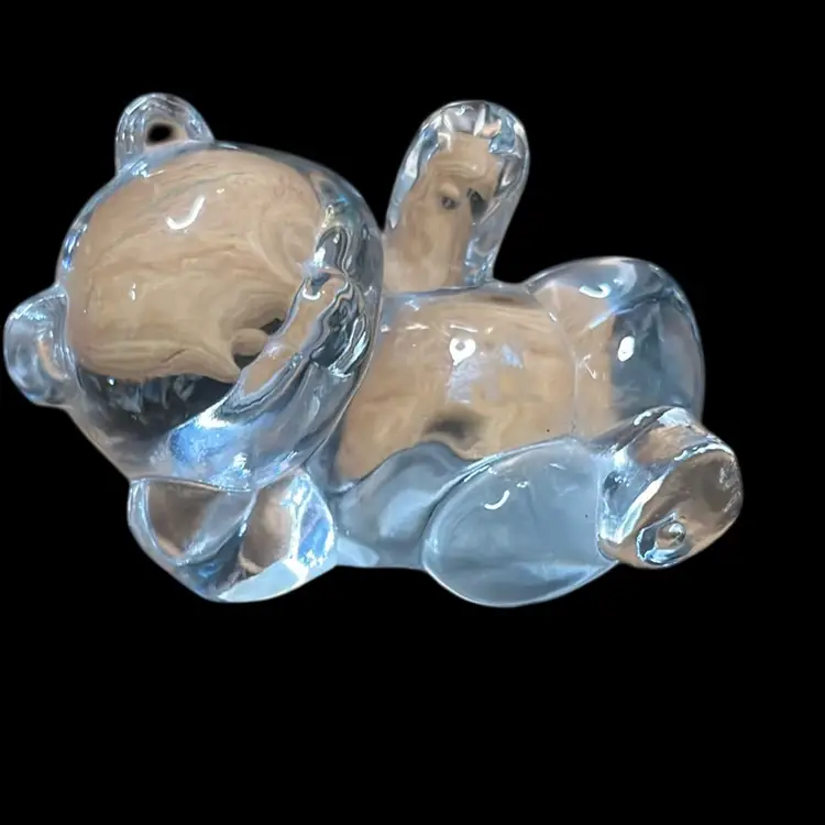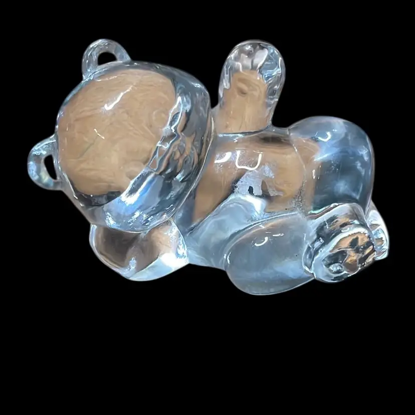 06. Fenton Art Glass Clear Glass Lounging Bear, "Ted" Vibes Vintage 4” Long
