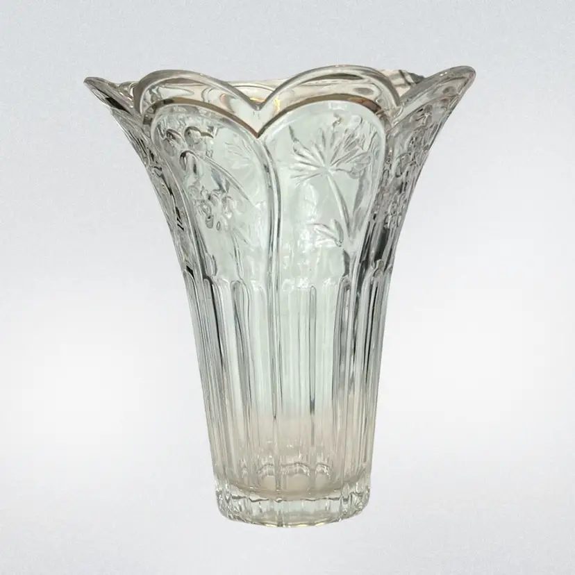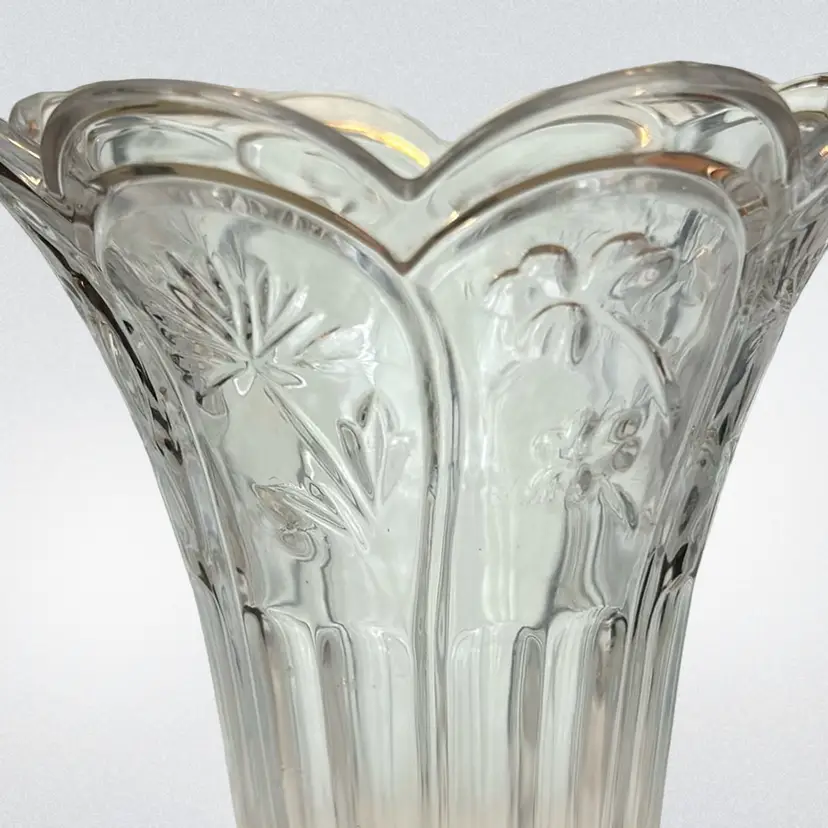 #1 Crystal Clear Studios Vase Scalloped Rim Floral/shamrock Japan