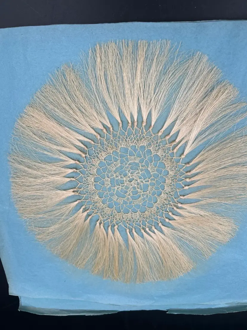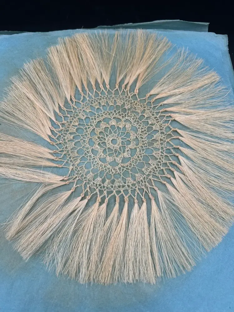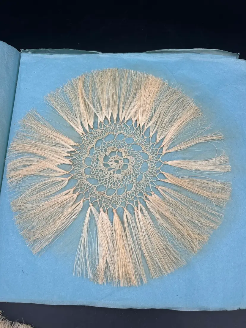All doilies in excellent condition. One other piece of hand meat article as well – 7.5 x 4.25”. Doilies approximately 8 inches in diameter. Items are dated according to other folders with similar items with date on folder of Christmas 1922.