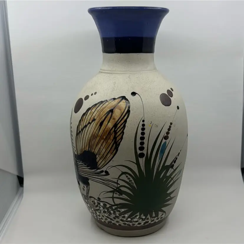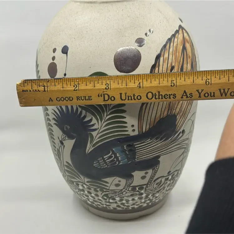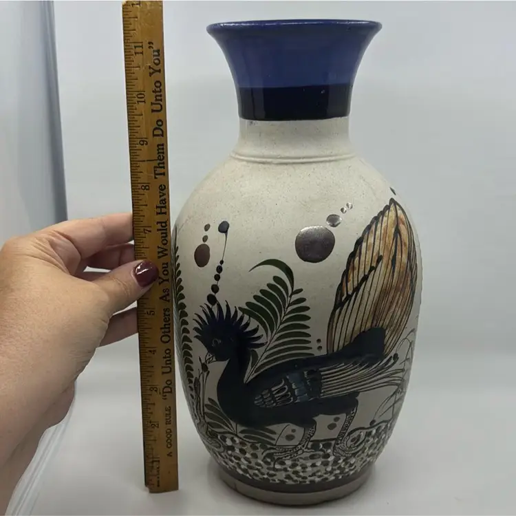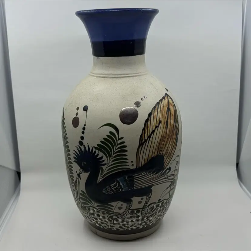 11.5” Tonala Roadrunner Vase, Signed “Mexico Mateos”