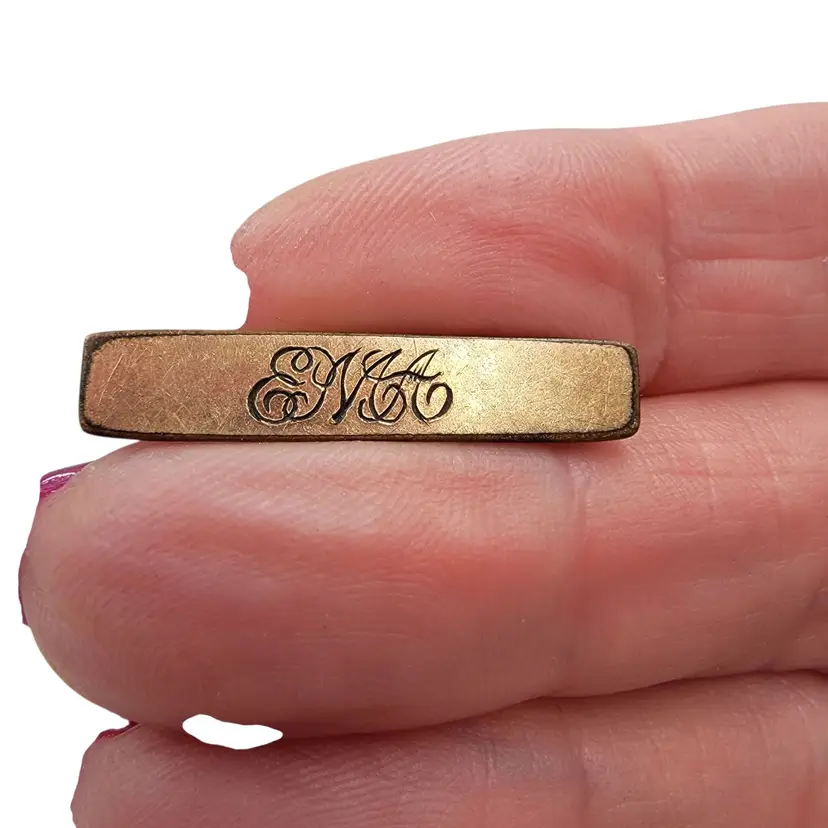 #14 Antique Monogrammed Brass Lingerie Pin With Bridal Handkerchief