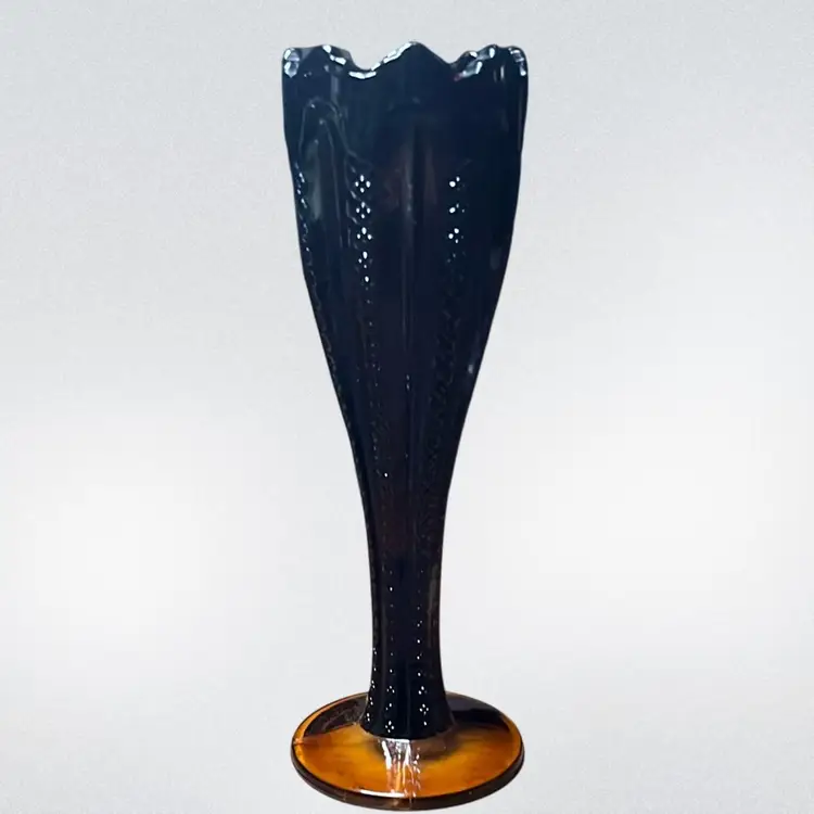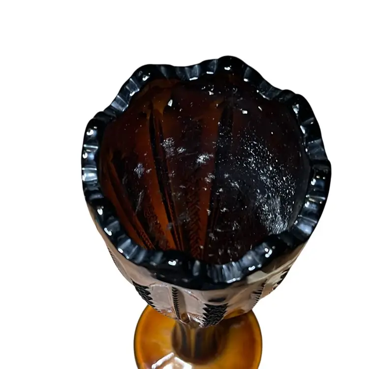 14. Brown glass Indiana Tiara glass goblet style vase 10” Tall