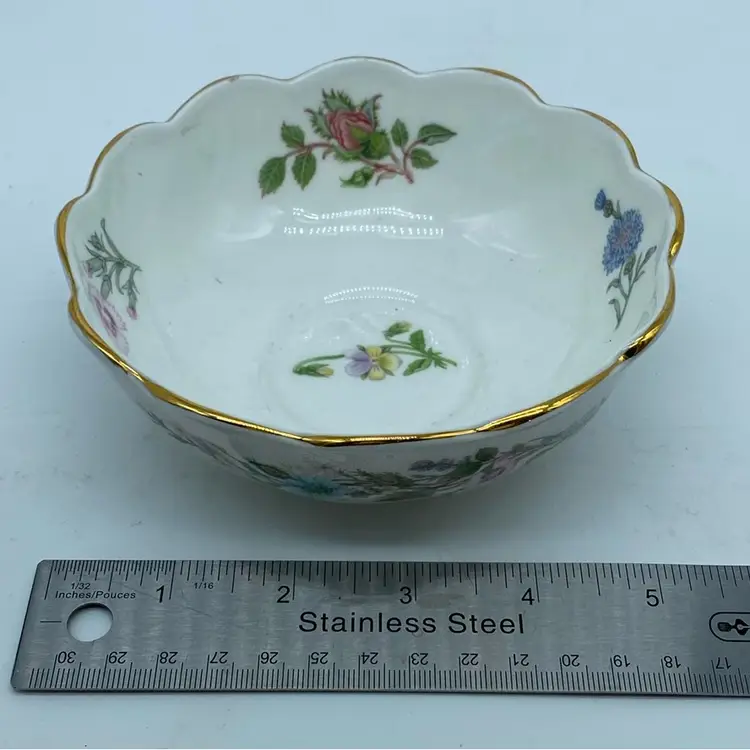 Aynsley Fine Bone China Bowl with wild flowers decor in wild Tudor pattern No chips or cracks 5 x 2 inch approximately