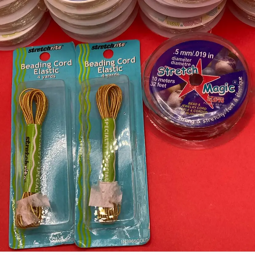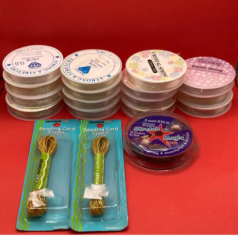 18 Rolls of bead & jewelry elastic cording, black , clear & metallic , 2 gold colored , 1 black colored, 15 clear