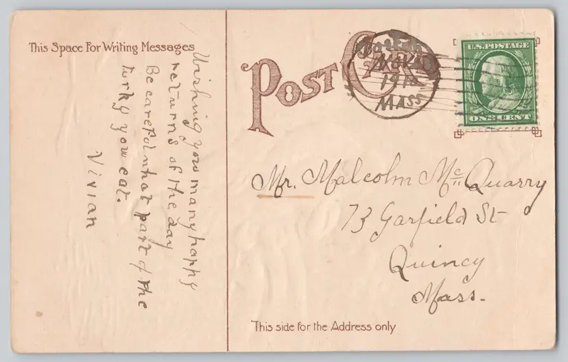 Complete set of postcards from this series. Publisher unknown. Two of the postcards have been postmarked and mailed, the other six are unused.