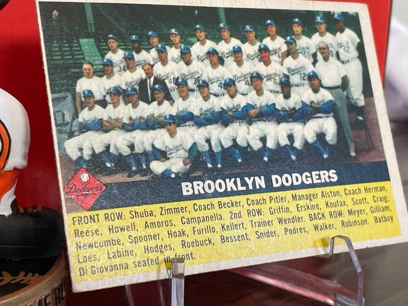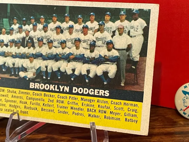 1956 Topps #166 Brooklyn Dodgers team card, minor issues - small indent top left, couple minor wrinkles. Ships free to U.S.