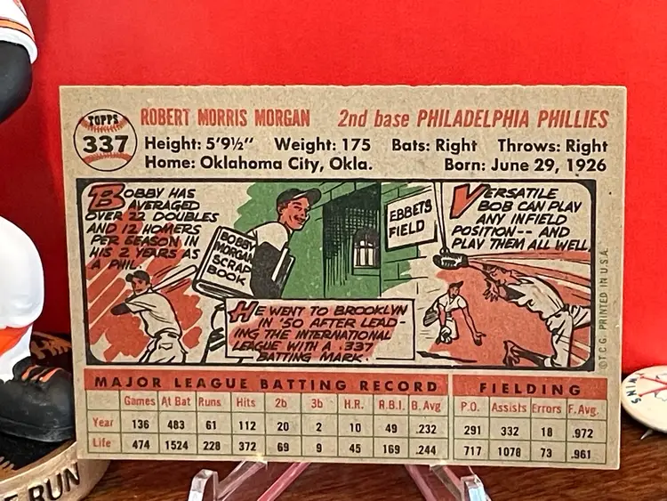1956 Topps Phillies 3 card lot - 72 team card, 334 Bob Miller, 337 Bobby Morgan. Ships free to U.S.