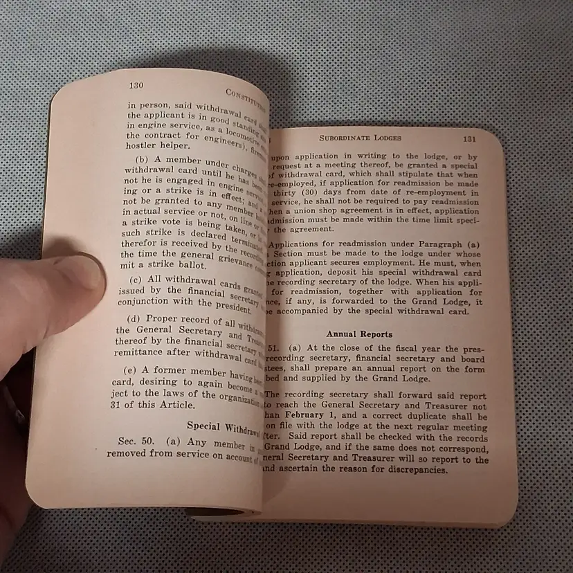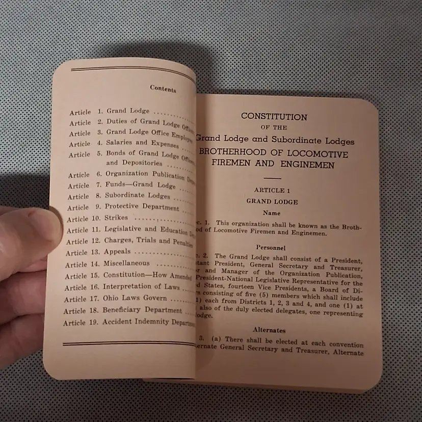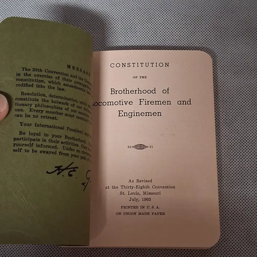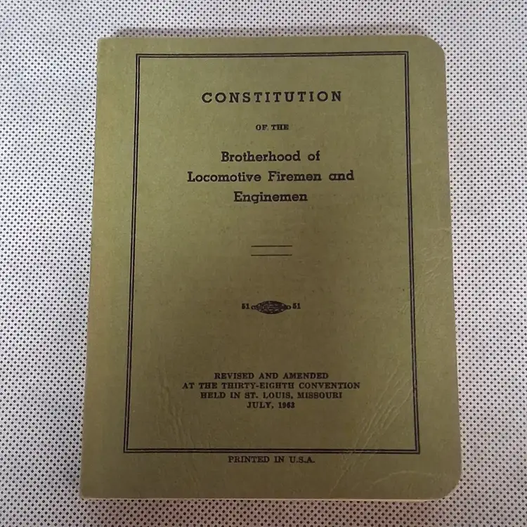 Vintage Railroadiana Constitution Of The Brotherhood of Locomotive Firemen and Enginemen 1963 373 Pages 4 1/4" x 5 1/2" Thank You For Looking