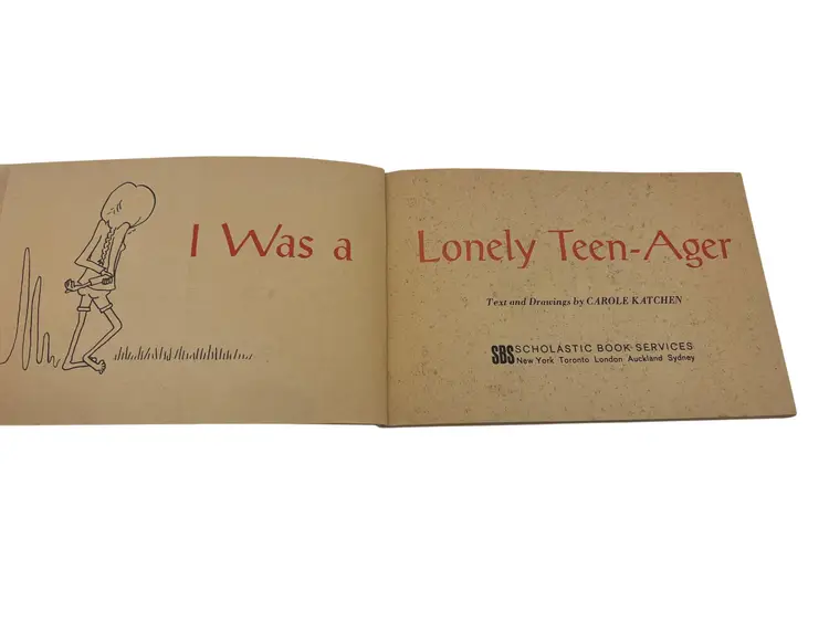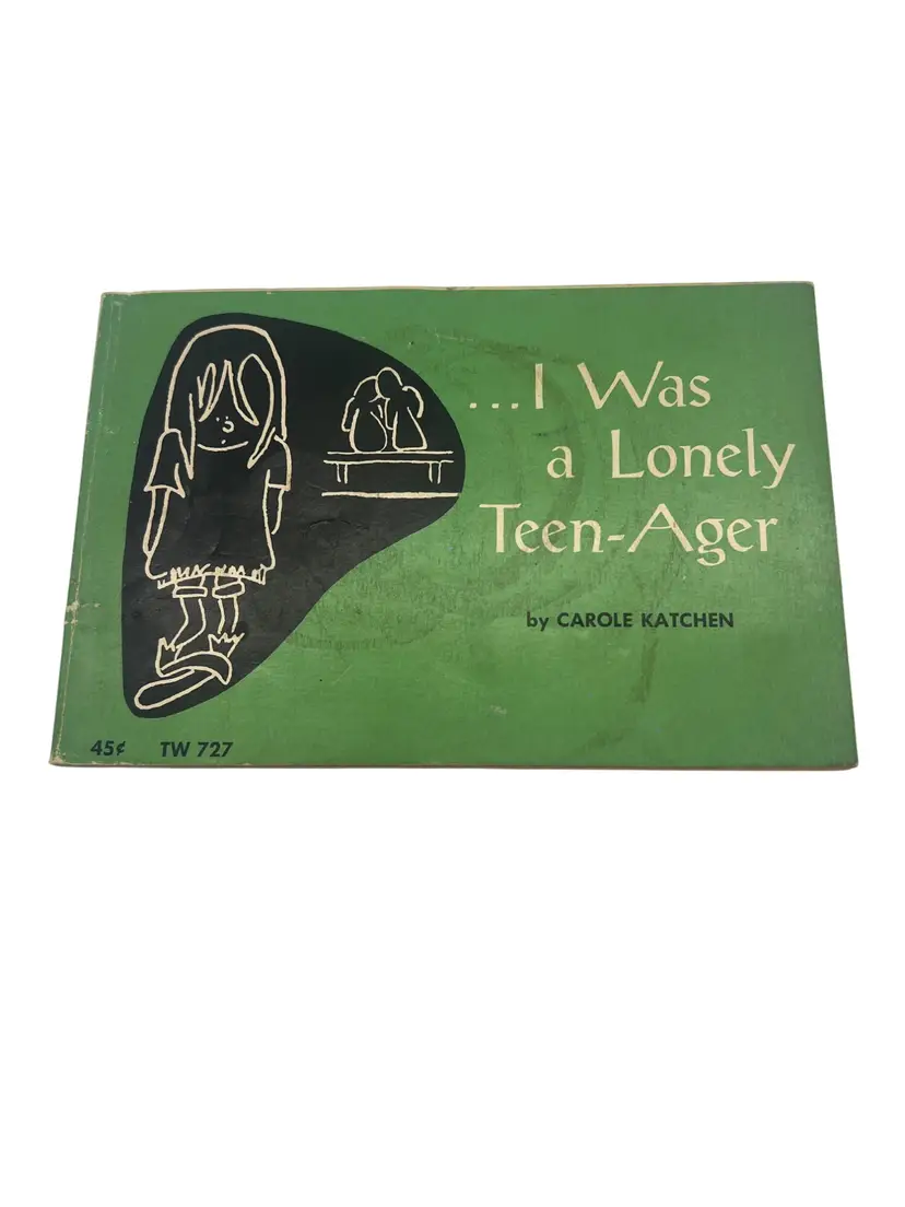1968 Scholastic paperback titled I Was a Lonely Teen-Ager by Carole Katchen, 5th printing. Part illustrated comic, part tongue-in-cheek memoir, this vintage book humorously chronicles the awkward social life of a teenage girl and her evolving strategies for success with boys. Originally sold for 45¢ as TW 727. Measures 6" x 4".