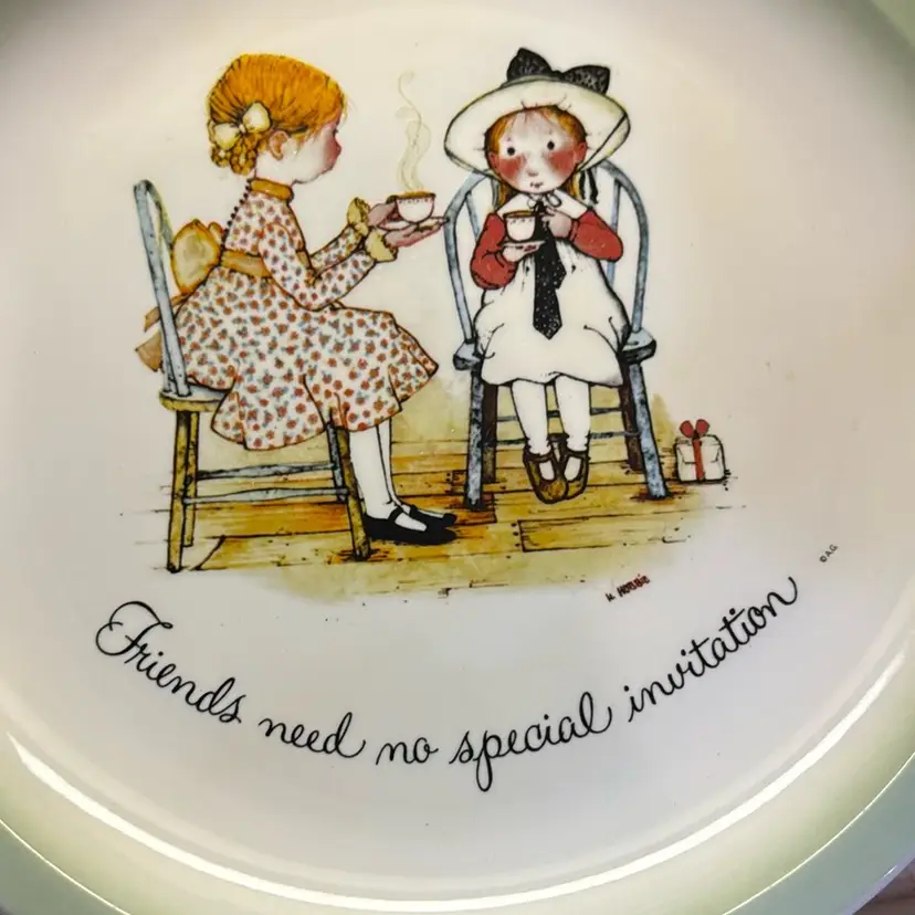 1972 Holly Hobbie collector’s edition plate. Made by American Greetings. Perfect vintage condition. Measures 10 inches across.