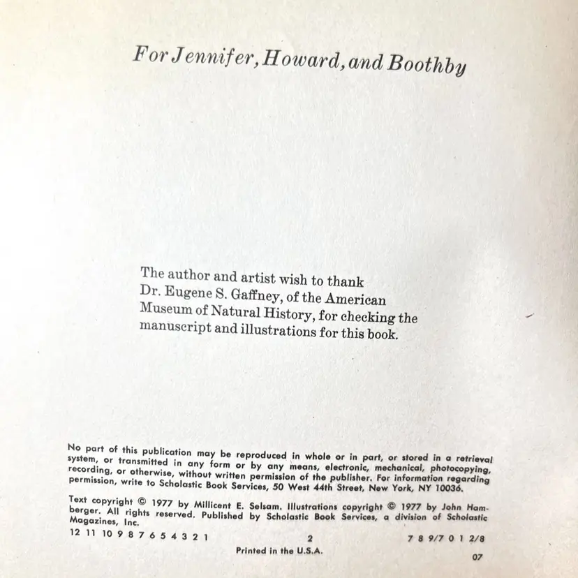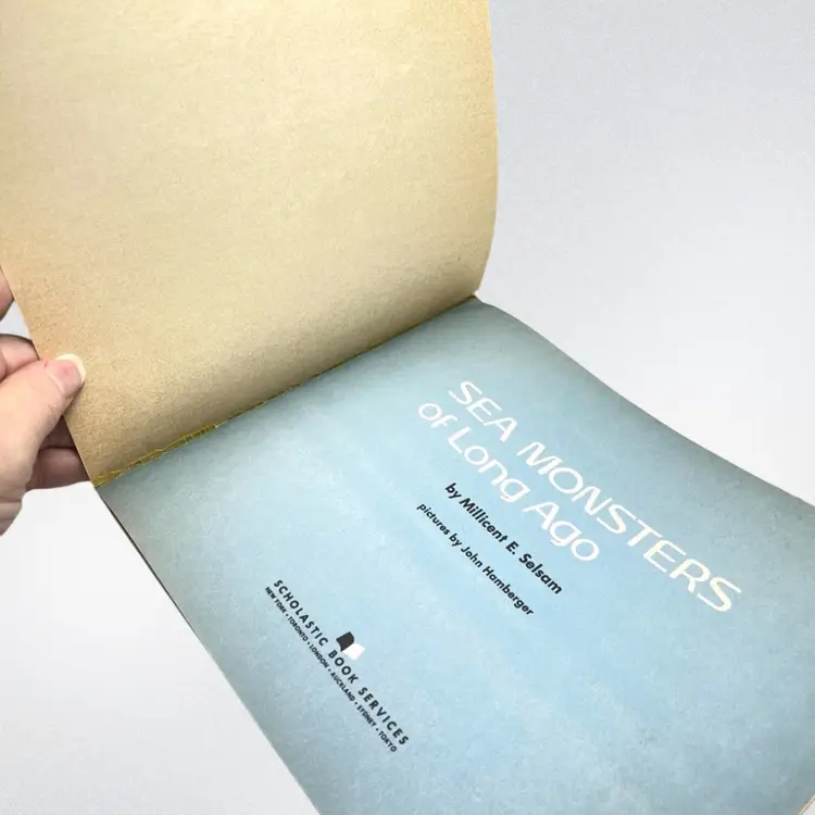 Sea Monsters Of Long Ago Softback book by Millicent E. Selsam. Published 1977 by Scholastic Book Services Informative short children’s book of ocean creatures “dinosaurs” like Ichthyosaurs, Plesiosaurs, and Mosasaurs. Condition: Please see photos. Pages yellowing. No missing pages or marks inside. 9” x 7-1/2” x 1/8”