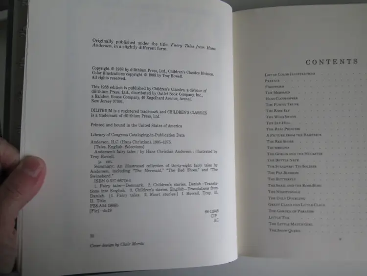 1988 Children's Classic Andersen's Fairy Tales book. Color illustrations. This is a hardcover book in very good condition. From a smoke and pet free home. First printing of this book in this series.