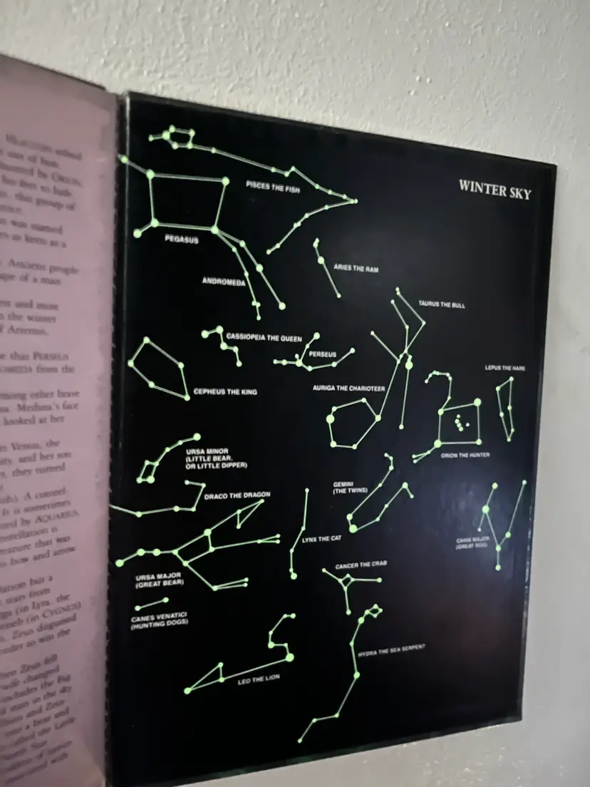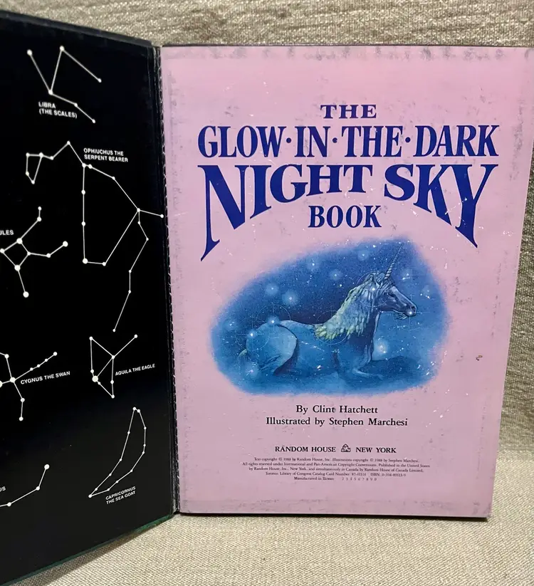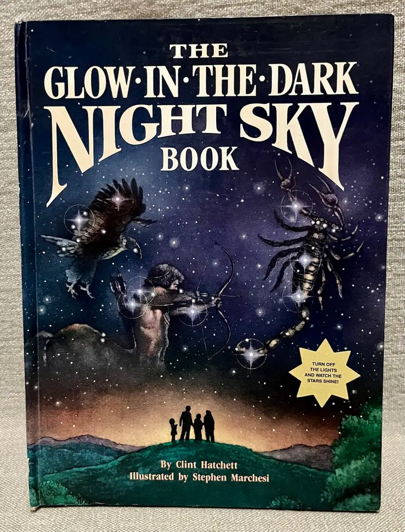 The 1988 "The Glow in the Dark Night Sky" children's book by Random House features a beautifully illustrated and educational narrative about astronomy. This hardcover book, intended for young adults and ages 9-12, showcases stunning glow-in-the-dark illustrations by Stephen Marchesi. Authored by Clint Hatchett and published in the 1980s, this first edition book is a vintage gem that captures the wonder of the night sky in English language. With approximately 19 pages, this activity book is a unique and captivating addition to any bookshelf whether for homeschooling, grandparent activities, family activities, or for visiting family and friends, or camping take-along-fun.