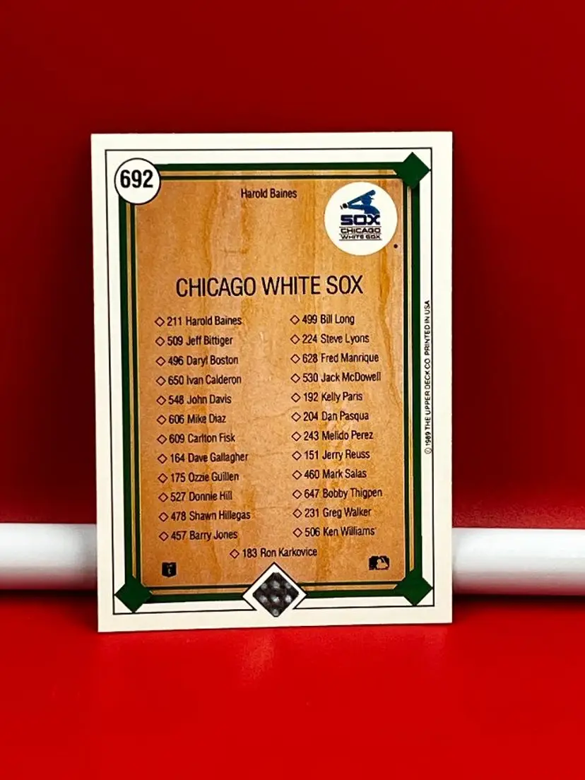 Hello, what we have is a Collector Baseball Card by: Upper Deck. Year: 1989. Series: Collectors Club. Player: Harold Baines. Number: #692.