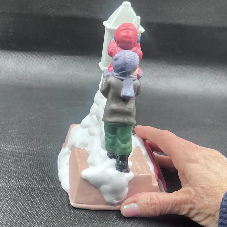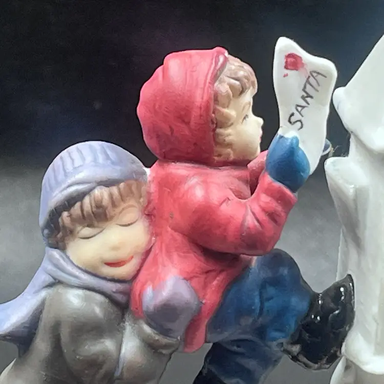 "Dear Santa, we've been (mostly) good" Measures: 6.5" Tall Condition is very good. No chips or cracks. Music box plays well