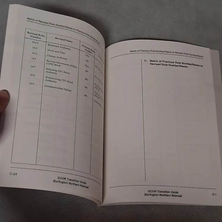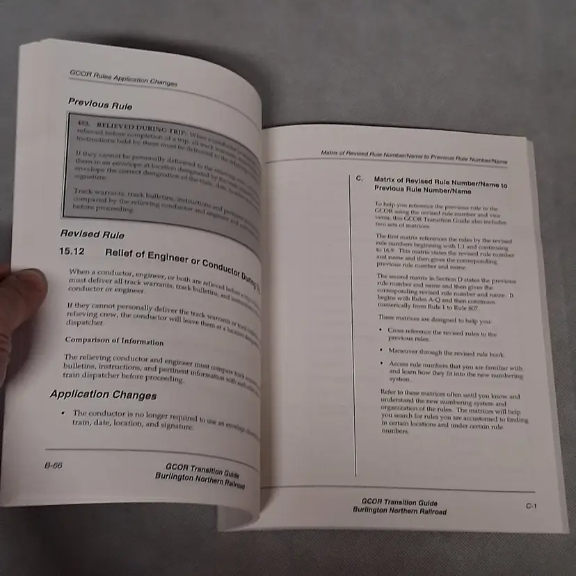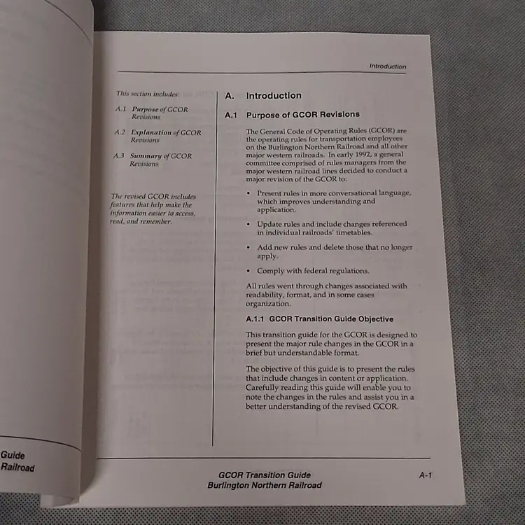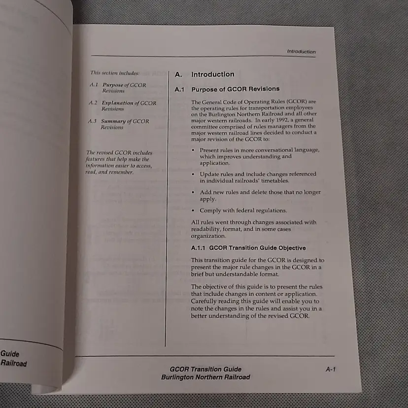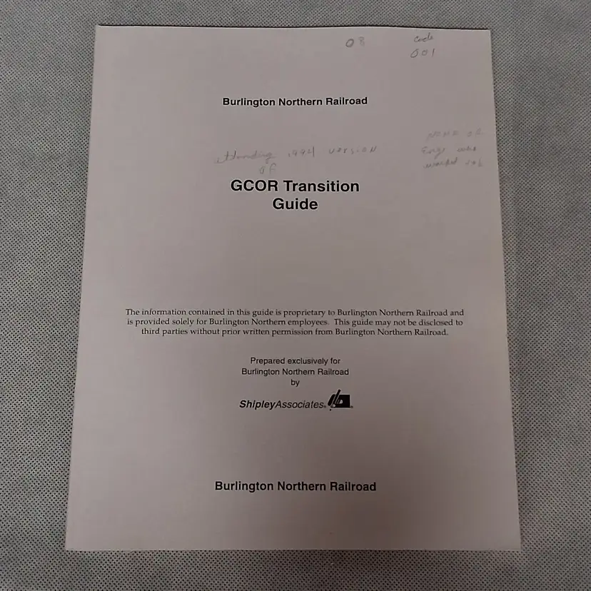 Vintage Railroadiana Burlington Northern Railroad 1994 GCOR Transition Guide General Code of Operating Rules Over 120 Pages 8.5" x 11" Booklet Railroad Estate Find of Former BN Engineer Thank You For Looking
