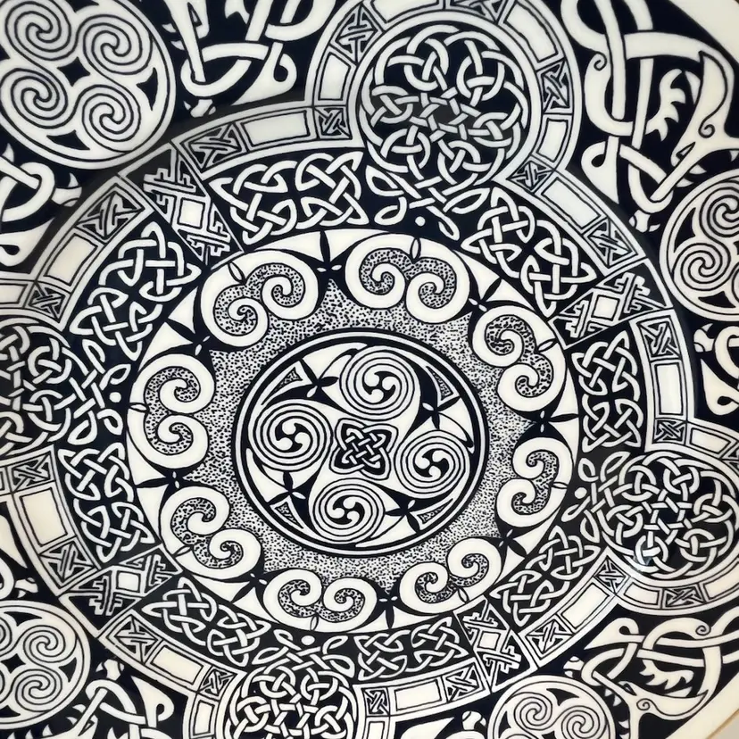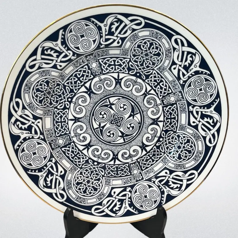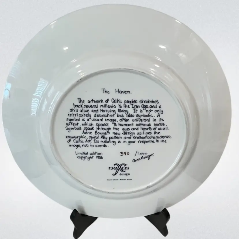 1996 Celtic Art Plate – “The Haven” By Anne Bowyer For Nexus Design- England, Limited Edition Numbered 390/1000 – 11” Bone China- Navy, White, Gold Rim