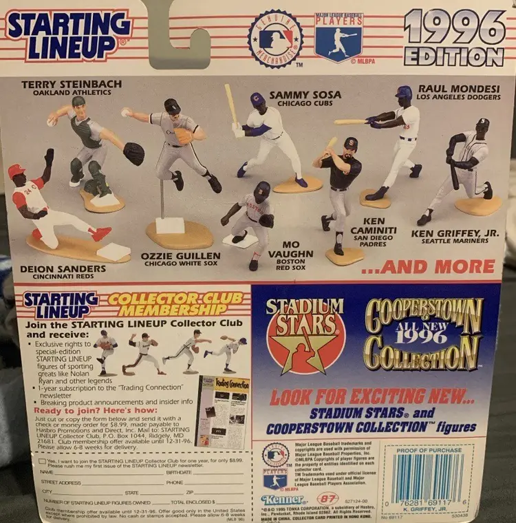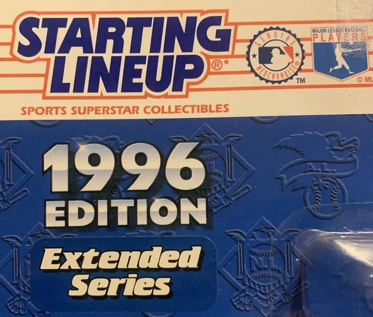 1996 Starting Lineup, Ken Griffey Jr. Seattle Mariners figure, extended series, new in package, package is a little worn, but it is still in great shape, I would say.