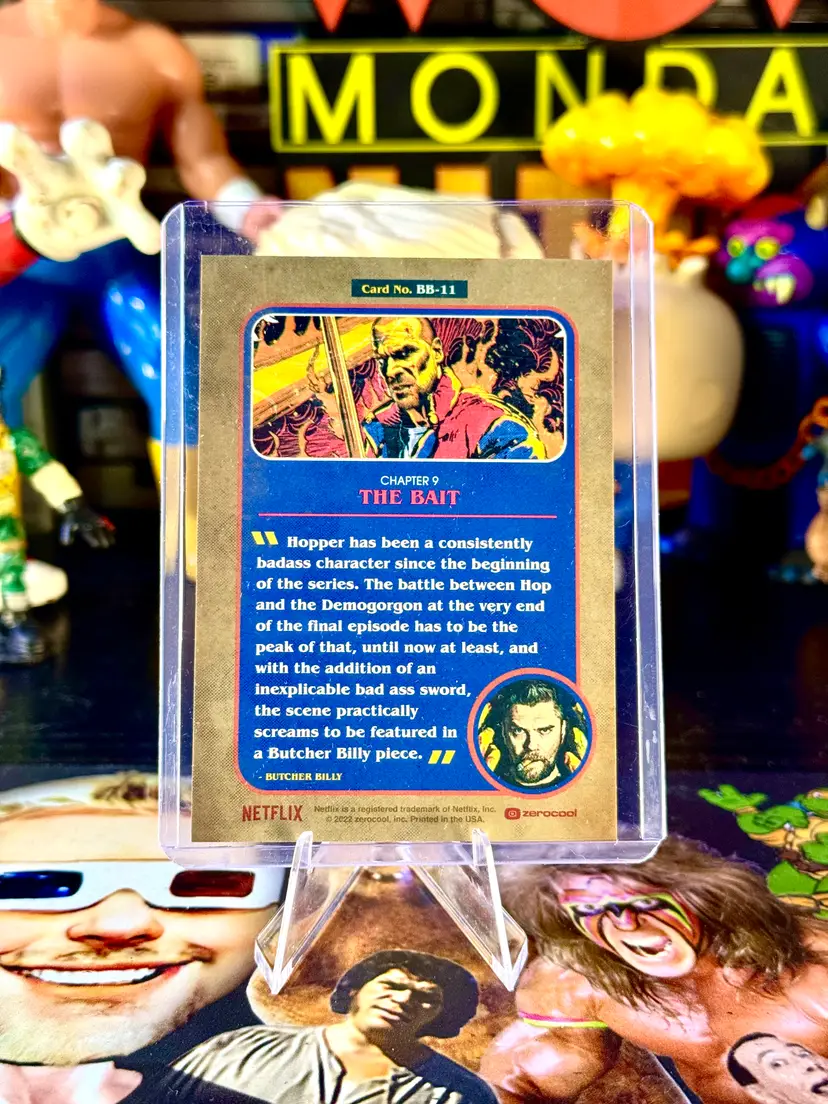 You are purchasing 1 2022 Stranger Things The Bait Zerocool Orange Foil 193/199 BB-11 Butcher Billy Card.