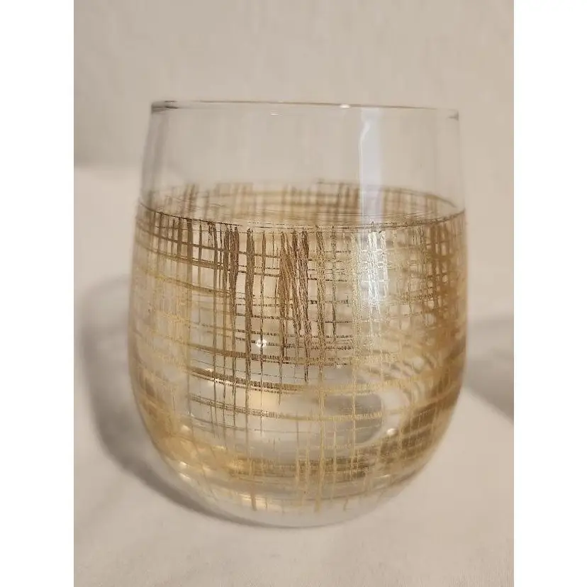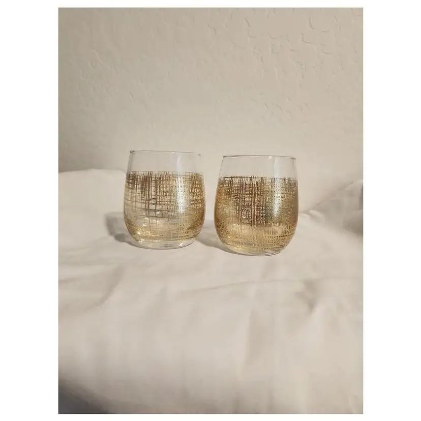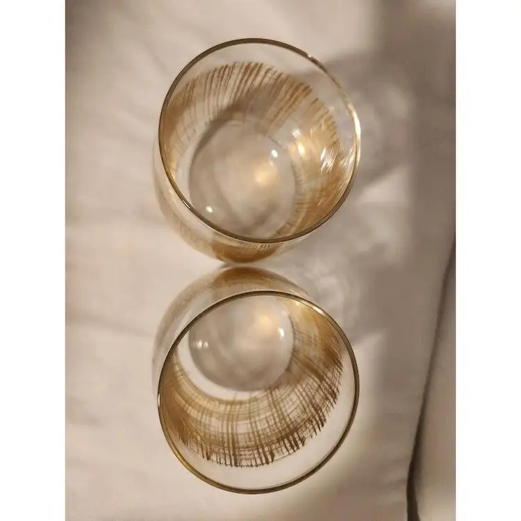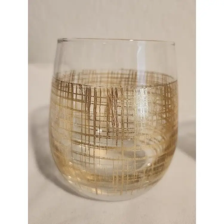 Elevate your drinkware collection with this elegant set of glass tumblers. Featuring a stunning gold pattern, these glasses add a touch of sophistication to any occasion.