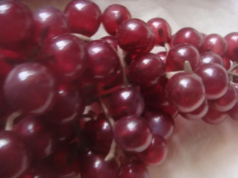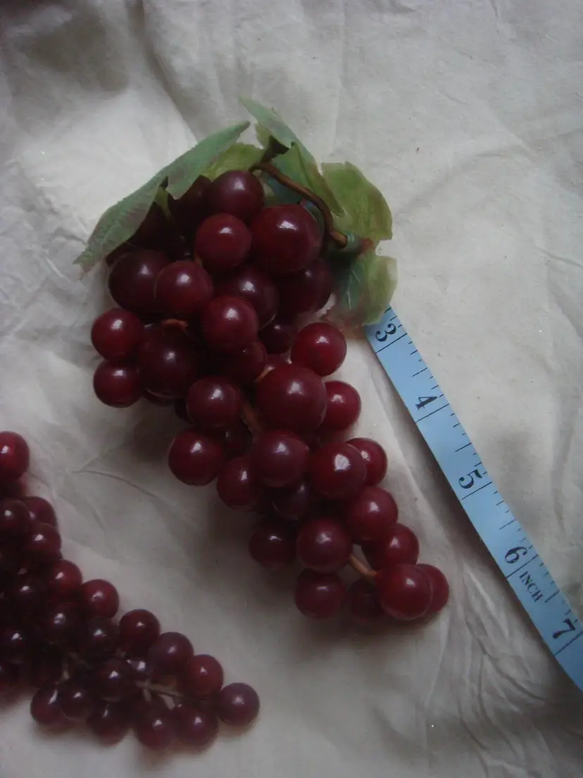 Plastic/rubber grape clusters 1 medium 1 small See measurements in photos. Good color, nice condition.