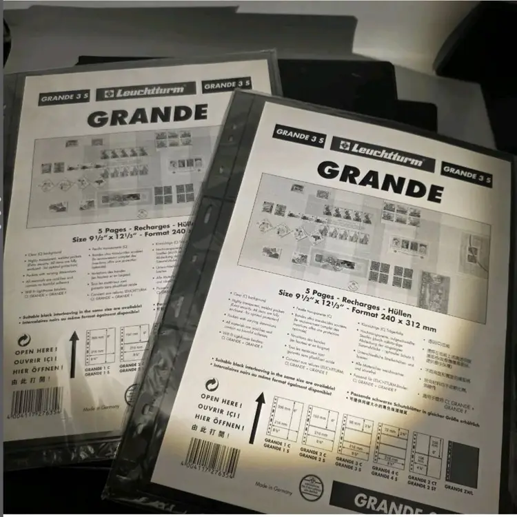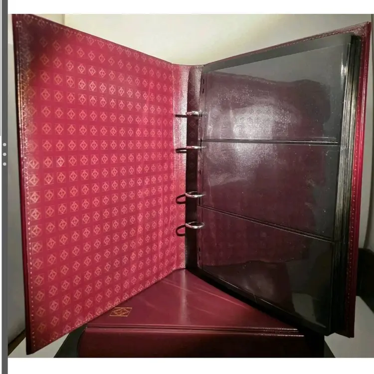 The products being described are two LIGHTHOUSE Albums one with black and one with burgundy and gold accents. Although the Burnaby featuring 4 rings for organizing coins, banknotes, and stamps. Made in Germany, and ready to go due to them already coming with over 70 inserts for holding various currency (coins, banknotesand stamp items. Perfect for collectors looking to organize and display their collection in a stylish and organized manner.