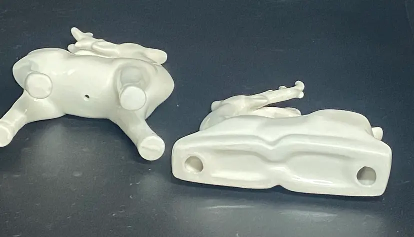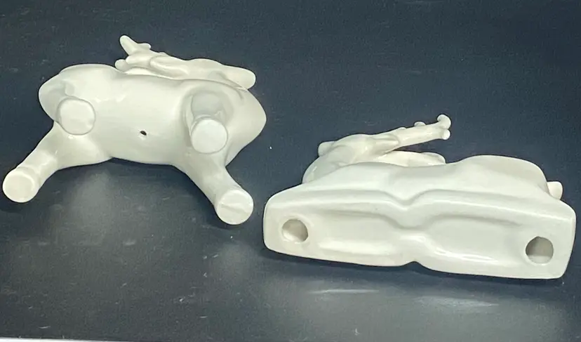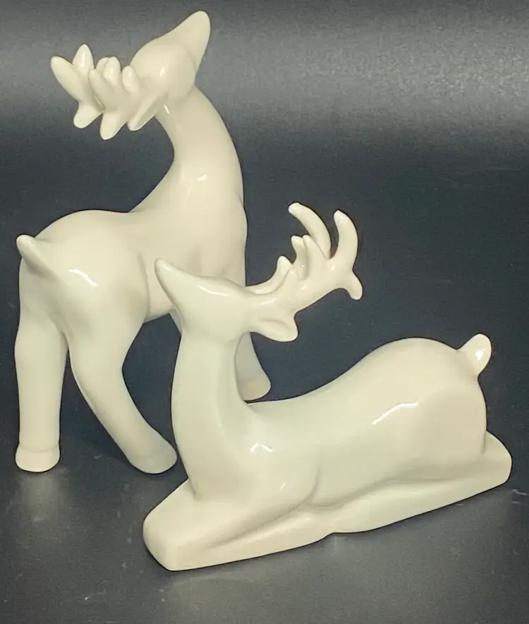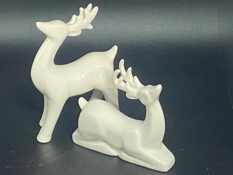 2 White Ceramic Reindeer, 5" Tall, 4" Tall