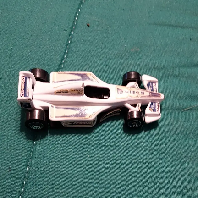 2000 Hot Wheels Mcdonalds White Compaq Race Car in good condition. A little wear on the stickers. Paint is good.