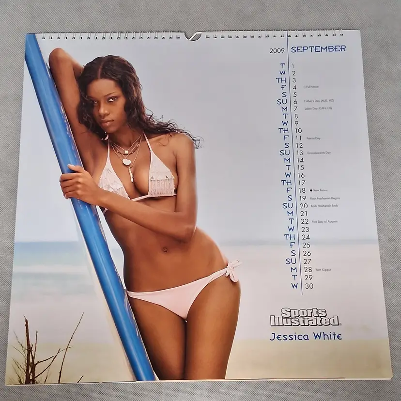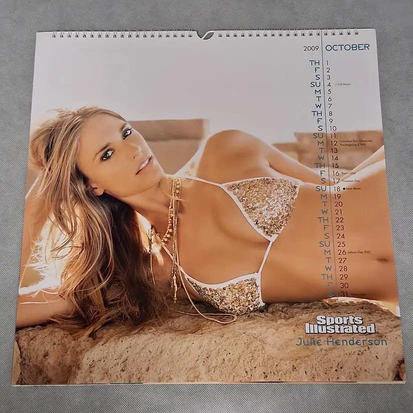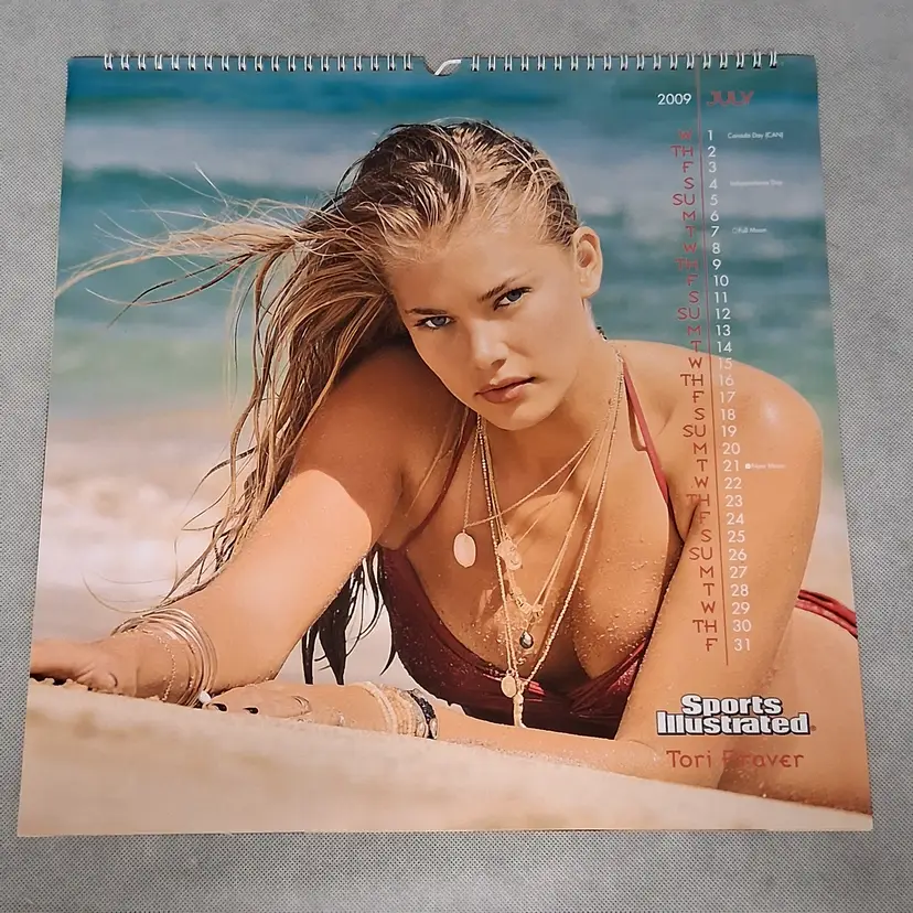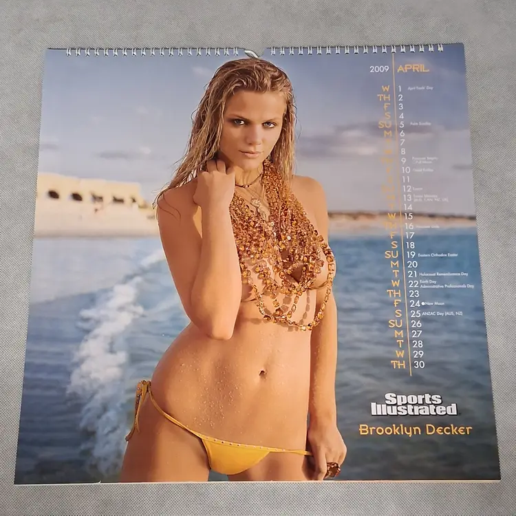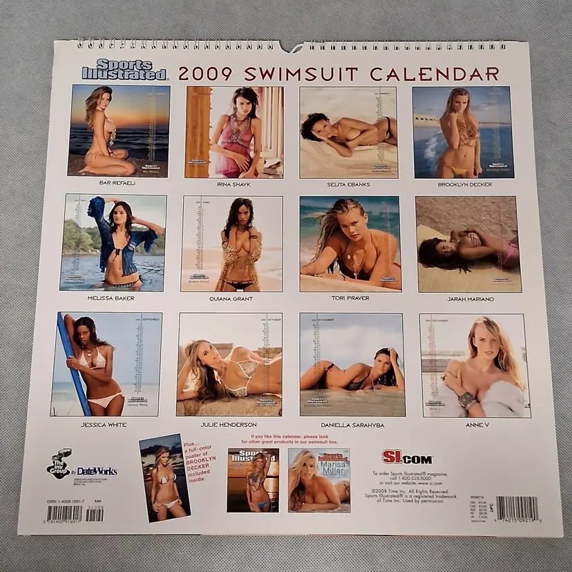 Collectible Wall Calendar Sports Illustrated Swimsuit Calendar With Poster of Brooklyn Decker 2009 Edition also Works for 2026 2037 2043 2054 2065 2071 Spiral Bound at Top No Signs of Use / Writing or Marks On Pages Measures 15" x 15" Poster is 14.5" x 28" Estate Find Thank You For Looking
