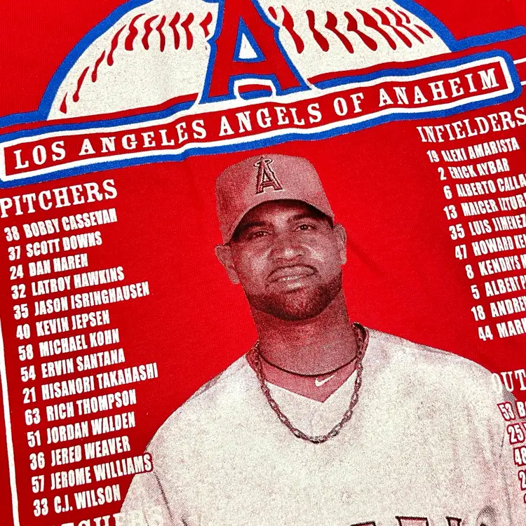 Opening Day 2012 Bootleg from Anaheim Angels featuring Albert Pujols in his first year with the team! Deadstock/Mint condition Alstyle tag, size L (21” x 31”)