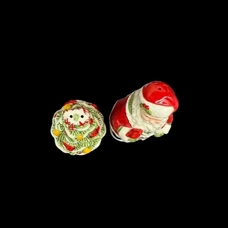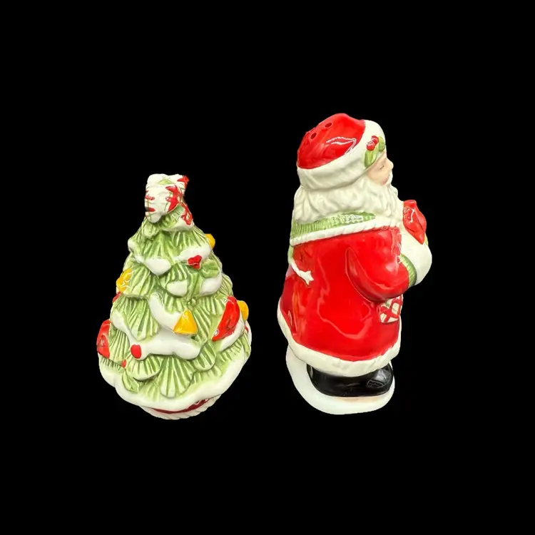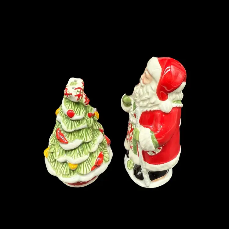 The 2012 Fitz & Floyd Winterberry Salt and Pepper Shaker Set is a charming addition to your holiday table decor. Featuring a festive Santa Claus character in a multicolor design, these ceramic shakers add a seasonal touch to your kitchen or dining room. Imported from China, this shaker set is perfect for Christmas celebrations and will surely bring a bit of holiday cheer to your dining experience.