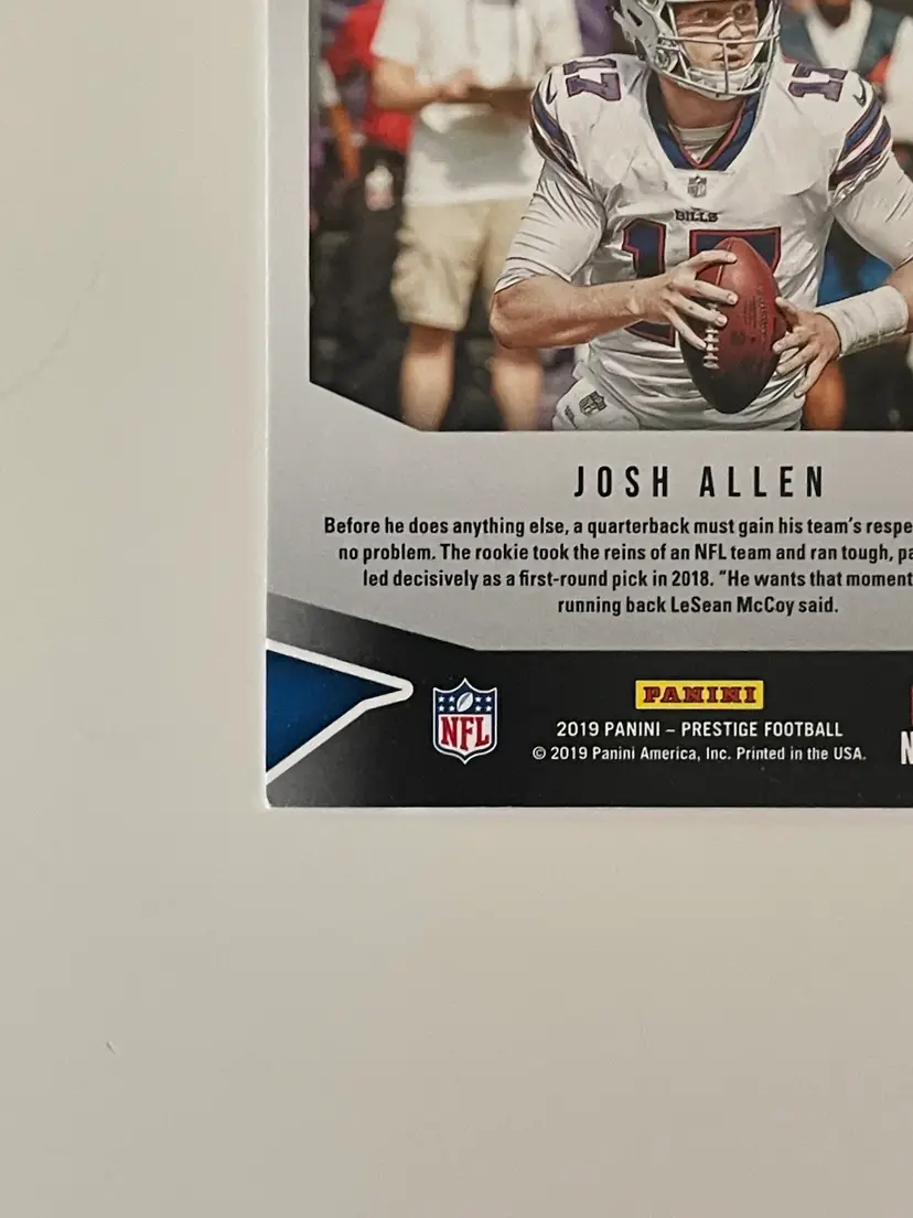 2019 Panini Prestige Rising Stars Josh Allen. Nice looking card. Take a look at the pictures for more details.