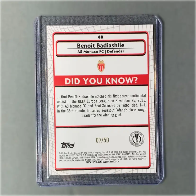 2021-22 Topps Merlin Chrome UEL BENOIT BADIASHILE 7/50 Rookie Gold Atomic Monaco