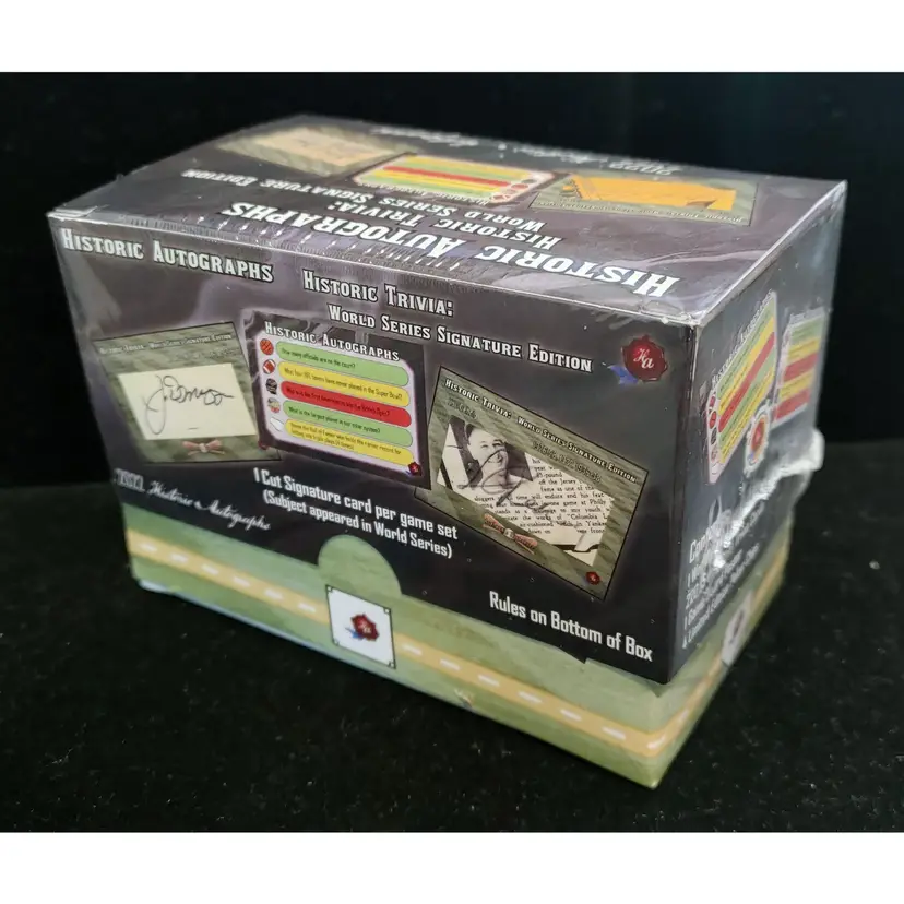 A 220-card Trivia game, complete with a gameboard poster, 4 player markers, and a cut signature card featuring an autograph of a player or manager that appeared in the World Series.