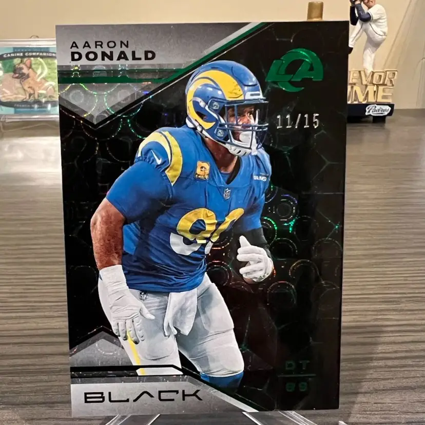 2023 Panini Black Aaron Donald 11/15 Emerald Short Print Pitt Panthers Los Angeles Rams