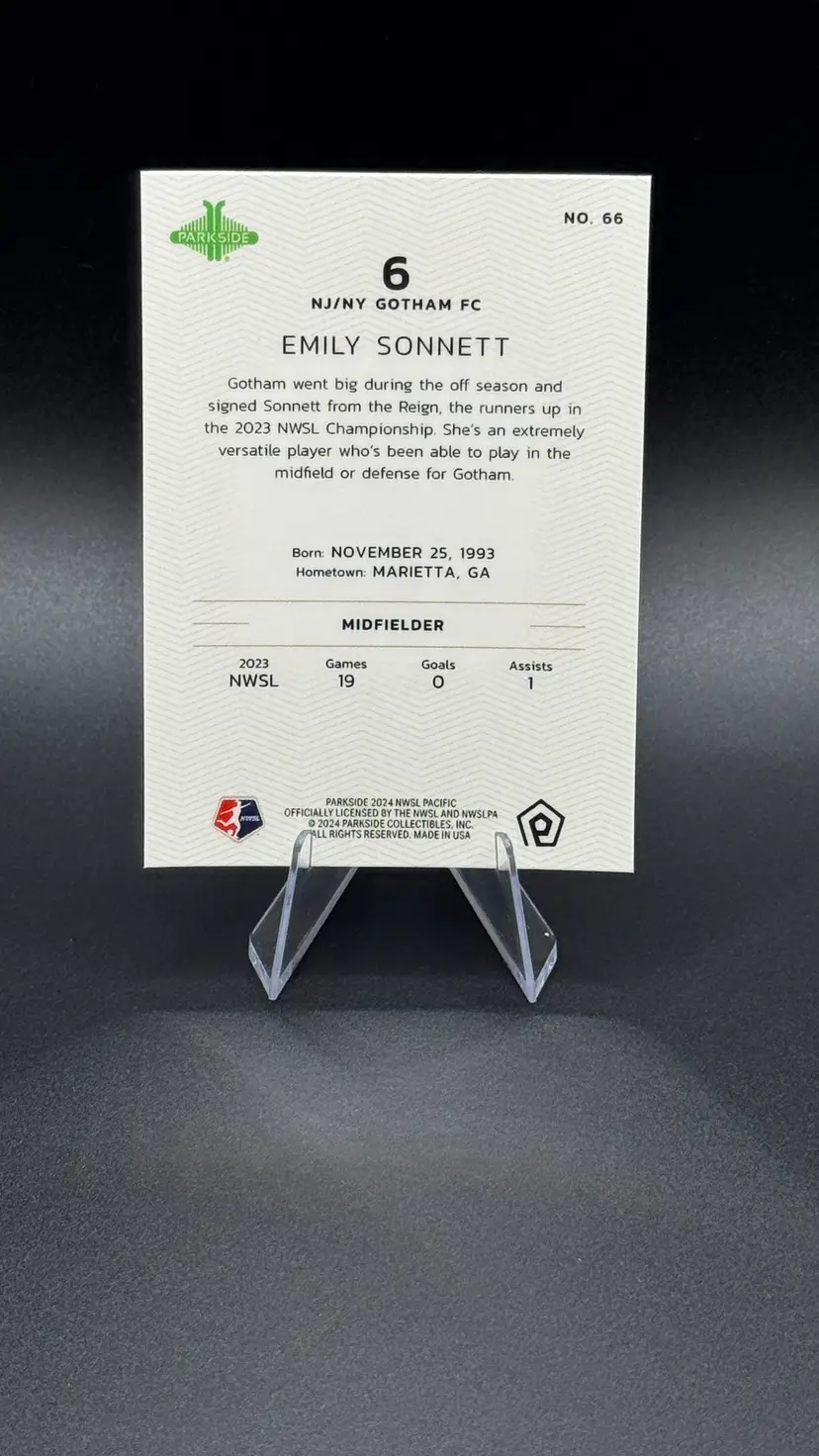 Emily Sonnett 2024 Parkside NWSL Pacific Base #66 NJ/NY Gotham FC
